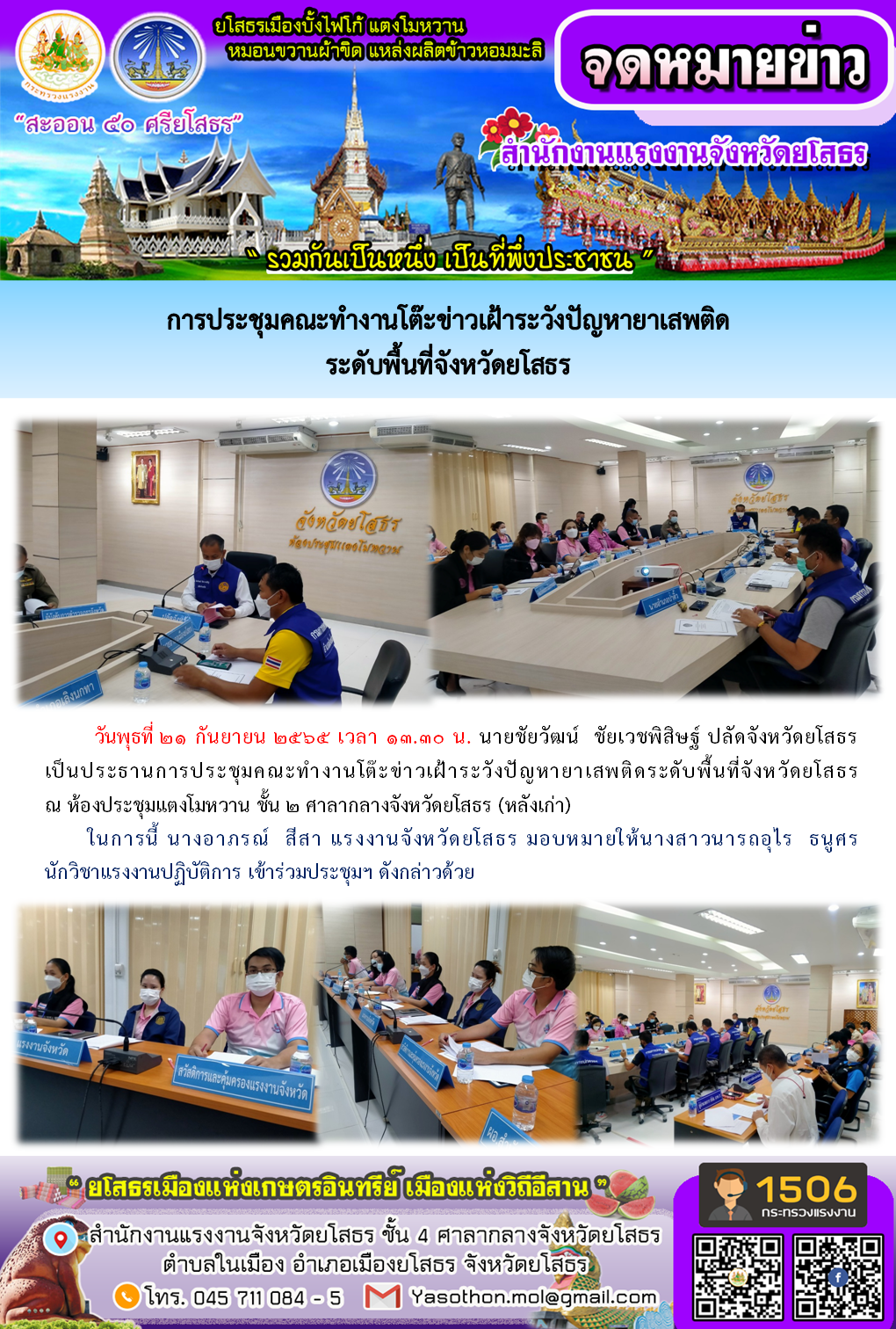 สรจ.ยส. เข้าร่วมการประชุมคณะทำงานโต๊ะข่าวเฝ้าระวังปัญหายาเสพติด ระดับพื้นที่จังหวัดยโสธร