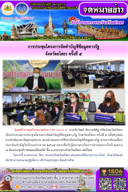 สรจ.ยส.เข้าร่วมการประชุมโครงการจัดทำบัญชีข้อมูลทางรัฐ จังหวัดยโสธร ครั้งที่ 5