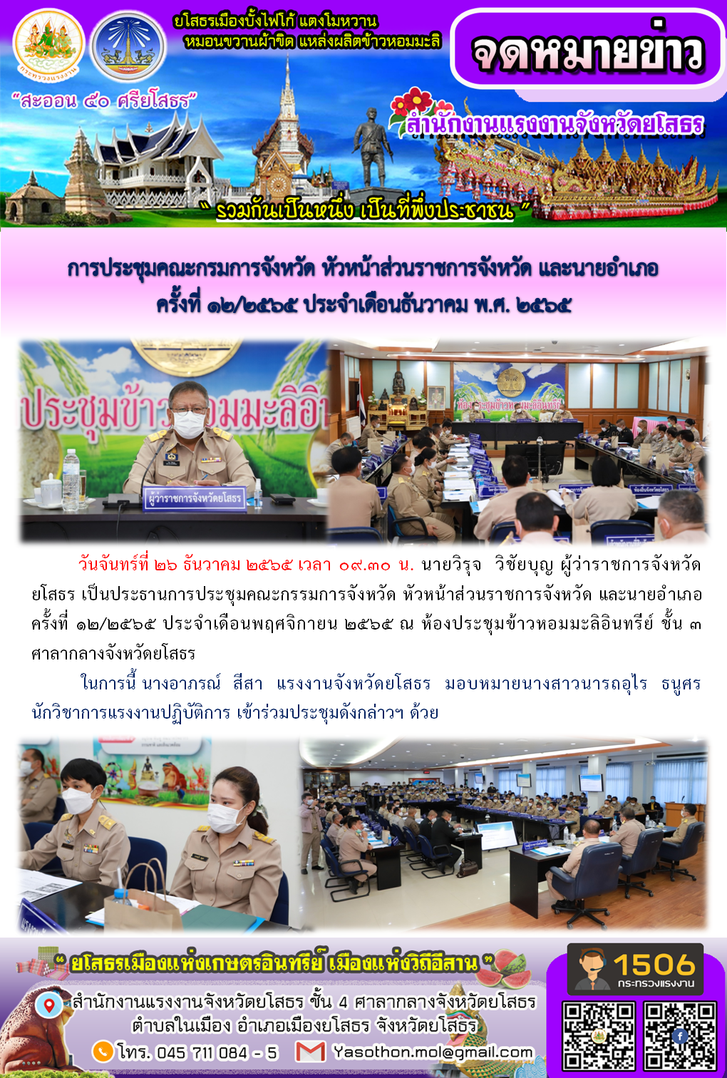 สรจ.ยส.เข้าร่วมประชุมคณะกรมการจังหวัด หัวหน้าส่วนราชการจังหวัด และนายอำเภอ ครั้งที่ 12/2565 ประจำเดือนธันวาคม พ.ศ. 2565