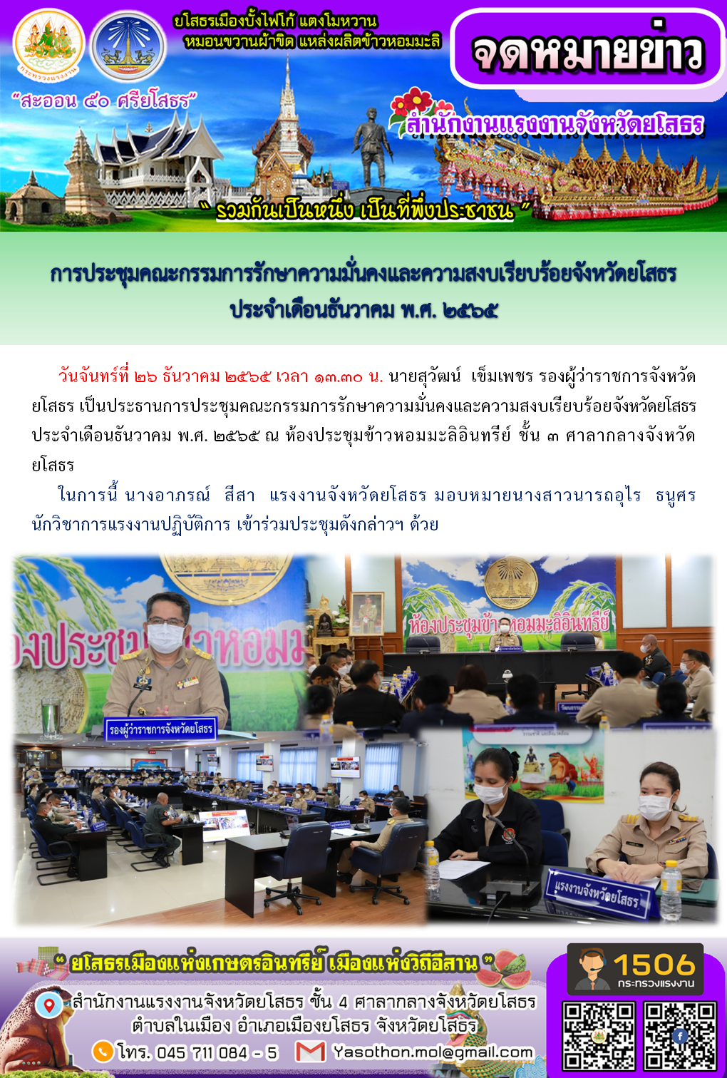 สรจ.ยส.เข้าร่วมประชุมคณะกรรมการรักษาความมั่นคงและความสงบเรียบร้อยจังหวัดยโสธร ประจำเดือนธันวาคม พ.ศ. 2565