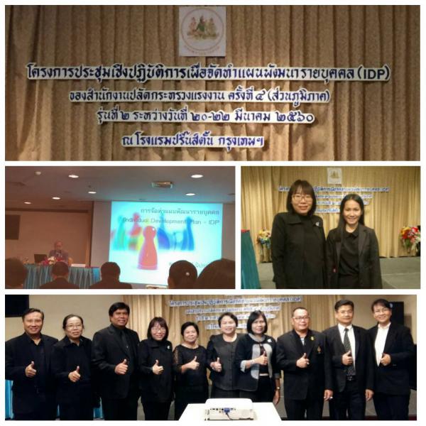 ในระหว่างวันที่ 20 – 22 มีนาคม 2560 แรงงานจังหวัดยโสธร (นางอรวรรณ หินตะ) และ น.ส.พิขญาภา พลศรี นักวิชาการแรงงานปฎิบัติการ สำนักงานแรงงานจังหวัดยโสธร เข้าร่วมอบรมหลักสูตรการจัดทำแผนพัฒนารายบุคคล Individual Development Plan – IDP ซึ่งกองบริหารทรัพยากรบุคคล สำนักงานปลัดกระทรวงแรงงาน เป็นเจ้าภาพจัด โดยมี ดร.ณัฐวัฒน์ นิปกากร เป็นวิทยากร ณ โรงแรมปริ้นส์ตั๊น กรุงเทพมหานคร