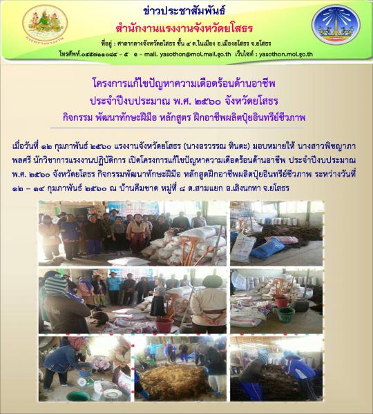 สรจ.ยโสธร จ่ายเงินค่าตอบแทนและปิดโครงการแก้ไขปัญหาควมเดือนร้อนด้านอาชีพ ปีงบประมาณ พ.ศ. 2560 กิจกรรม พัฒนาทักษะฝีมือ หลักสูตร ฝึกอาชีพผลิตปุ๋ยอินทรีย์ชีวภาพ
