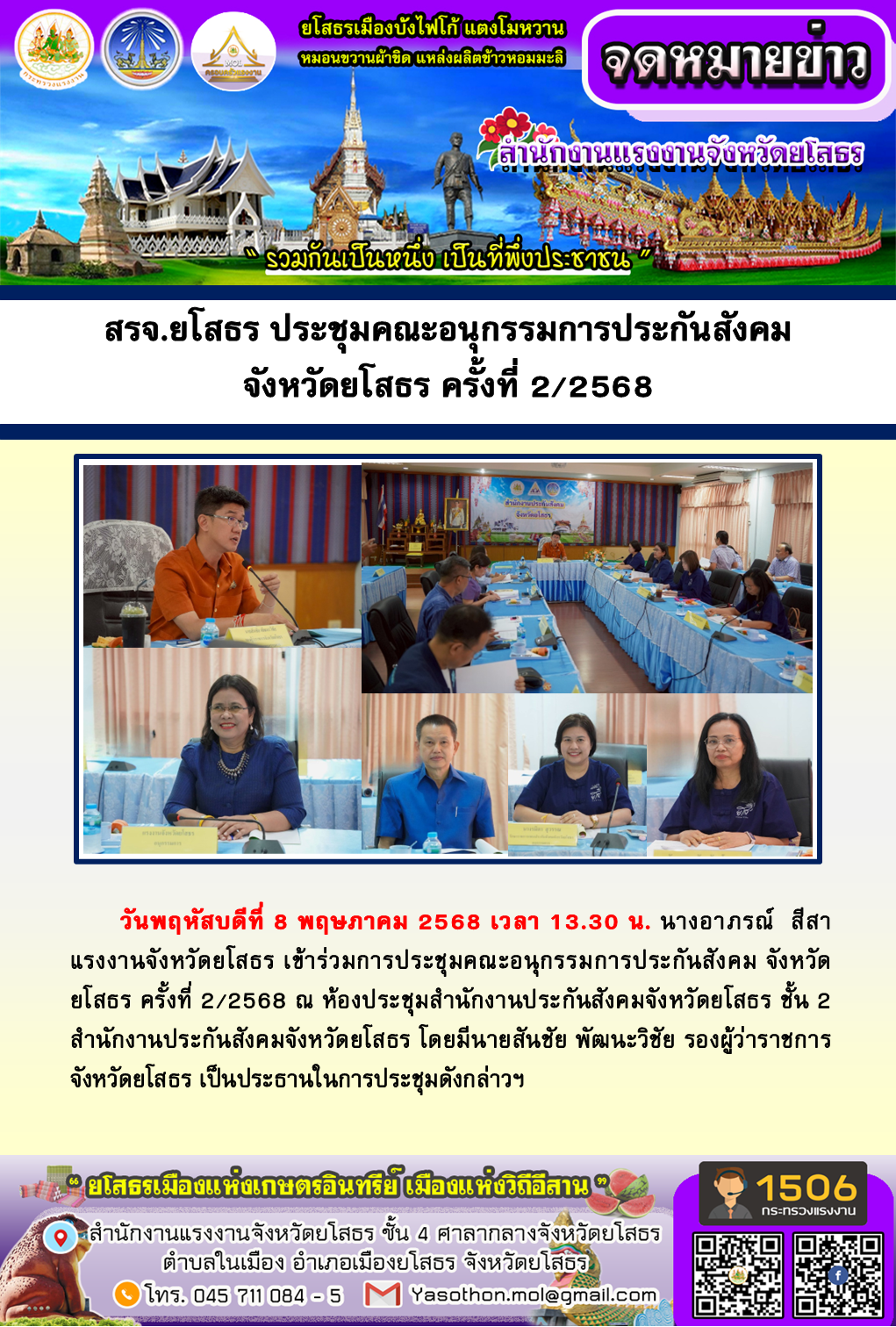 สรจ.ยโสธร ประชุมคณะอนุกรรมการประกันสังคม จังหวัดยโสธร ครั้งที่ 2/2568