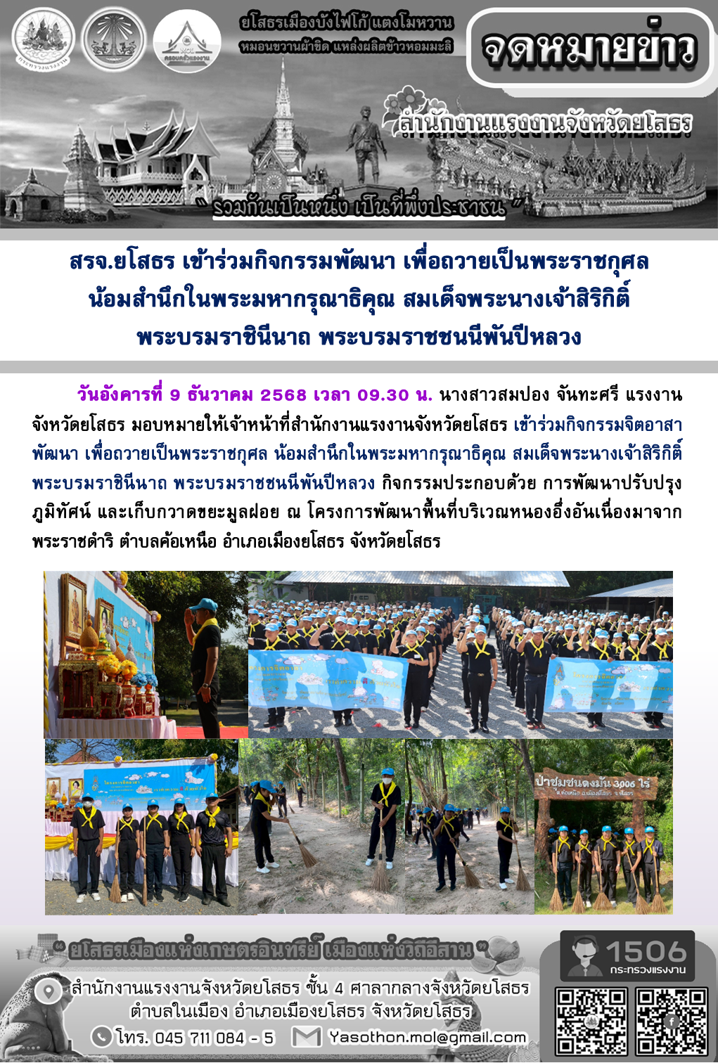 สรจ.ยโสธร เข้าร่วมกิจกรรมพัฒนา เพื่อถวายเป็นพระราชกุศล น้อมสำนึกในพระมหากรุณาธิคุณ สมเด็จพระนางเจ้าสิริกิติ์ พระบรมราชินีนาถ พระบรมราชชนนีพันปีหลวง