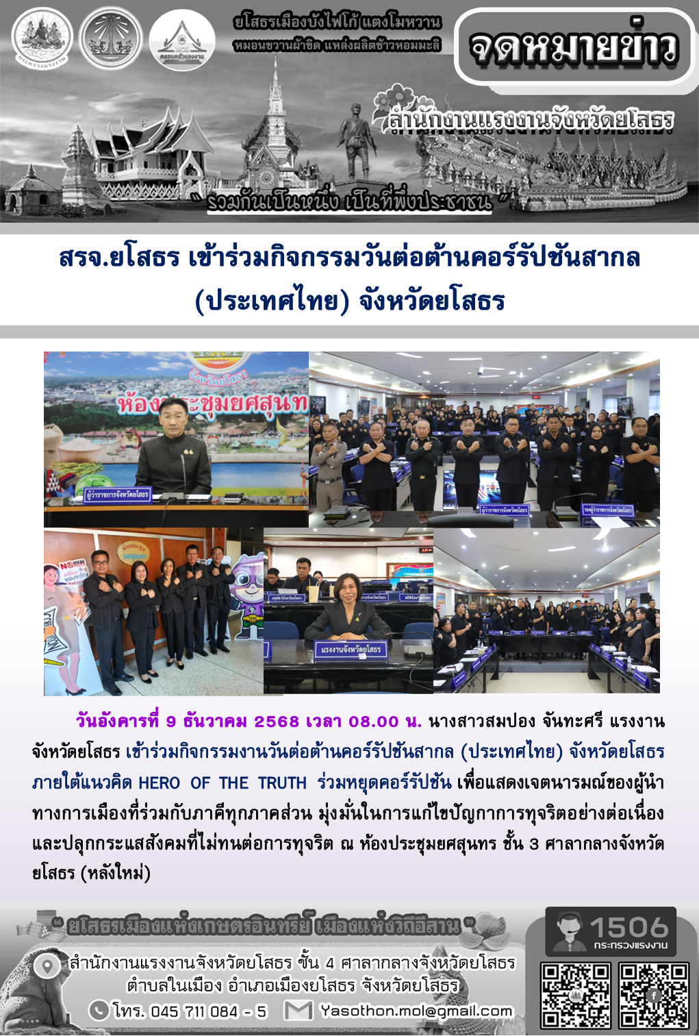 สรจ.ยโสธร เข้าร่วมกิจกรรมวันต่อต้านคอร์รัปชันสากล (ประเทศไทย) จังหวัดยโสธร