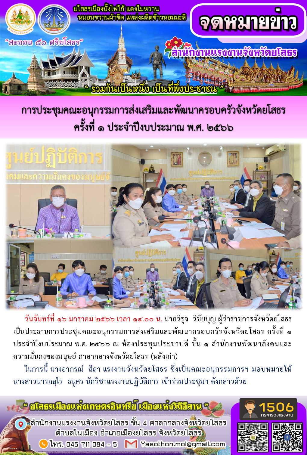 สรจ.ยโสธร.เข้าร่วมประชุมคณะอนุกรรมการส่งเสริมและพัฒนาครอบครัวจังหวัดยโสธร ครั้งที่ 1 ประจำปีงบประมาณ พ.ศ. 2566