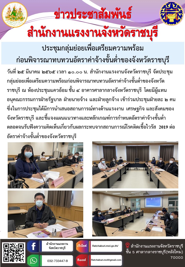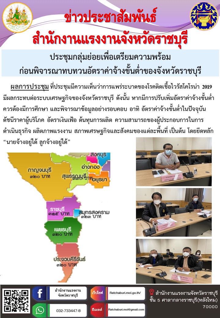 สรจ.รบ. จัดประชุมกลุ่มย่อยเพื่อเตรียมความพร้อมก่อนการพิจารณาทบทวนอัตราค่าจ้างขั้นตำ่ของจังหวัดราชบุรี