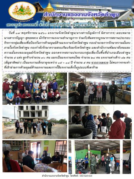 สรจ.ลำพูน ร่วมกับทีมตรวจบูรณาการสถานประกอบกิจการกลุ่มเสี่ยงในพื้นที่อำเภอเมืองลำพูน