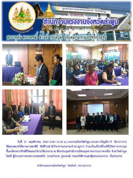 สรจ.ลำพูน ร่วมเป็นเกียรติในพิธีเปิดการประชุมชี้แจงโครงการรักษ์ชีวิตและอวัยวะให้แรงงาน