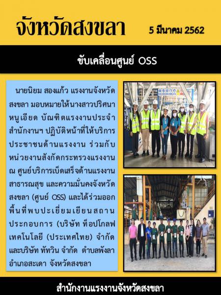 สรจ.สงขลา เข้าร่วมออกพื้นที่พบปะเยี่ยมเยียนสถานประกอบการ บริษัท ท็อปโกลฟ เทคโนโลยี (ประเทศไทย) จำกัด และ บริษัท ทัพวิน จำกัด ตำบลพังลา อำเภอสะเดา จังหวัดสงชลา เพื่อขับเคลื่อนศูนย์ OSS จังหวัดสงขลา