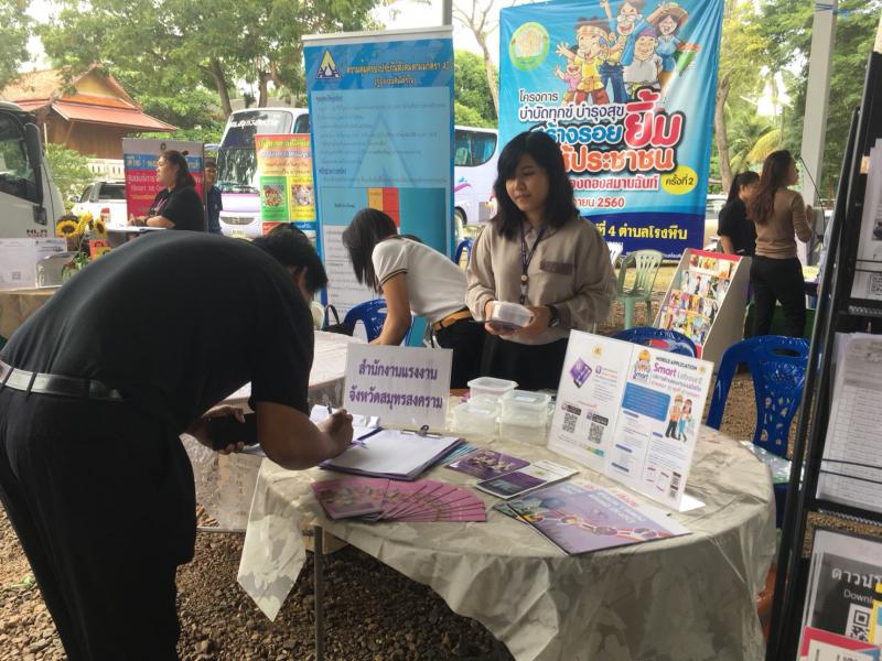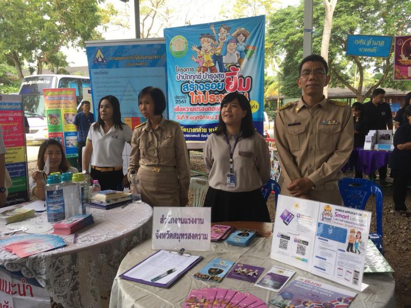 เมื่อวันที่ ๙ พฤศจิกายน ๒๕๖๐ เวลา ๐๙.๐๐ น. สำนักงานแรงงานจังหวัดสมุทรสงคราม จัดหน่วยบริการประชาชน เข้าร่วมโครงการ บำบัดทุกข์ บำรุงสุข สร้างรอยยิ้มให้ประชาชน เพื่อความ ปรองดองสมานฉันท์ประจำปีงบประมาณ พ.ศ.๒๕๖๑ โดยมี นายคันฉัตร ตันเสถียร ผวจ.สมุทรสงคราม เป็นประธาน ณ วัดบางกล้วย หมู่ที่ ๔ ต.โรงหีบ อ.บางคนที จ.สมุทรสงคราม กิจกรรมประกอบด้วย การให้คำแนะนำบริการ ของกระทรวงแรงงาน แนะนำการดาวน์โหลดแอพพลิเคชั่น smart labour การรับปรึกษา ปัญหาร้องทุกข์ ร้องเรียนมีผู้มารับบริการ ๔๕ คน