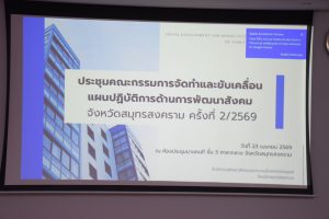 วันพฤหัสบดีที่ 23 เมษายน 2569 เวลา 13.30 น. นางรภัสสา พานิกุล แรงงานจังหวัดสมุทรสงคราม มอบหมายให้ นางสาวลภัสนันท์ ลัดดาพรสวัสดิ์ นักวิชาการแรงงานชำนาญการ ร่วมประชุมคณะกรรมการจัดทำ และขับเคลื่อนแผนปฏิบัติการด้านการพัฒนาสังคม จังหวัดสมุทรสงคราม ครั้งที่ 2/2569 เพื่อพิจารณากรอบแนวคิด ทิศทางของแผนปฏิบัติการด้านการพัฒนาสังคมจังหวัดสมุทรสงคราม ประจำปีงบประมาณ พ.ศ. 2569 โดยมี นายรนัสถ์ชัย พุ่มเจริญ รองผู้ว่าราชการจังหวัดสมุทรสงคราม เป็นประธานการประชุม พร้อมด้วย หัวหน้าส่วนราชการ ภาคเอกชน และภาคประชาสังคม เข้าร่วมประชุมด้วย ณ ห้องประชุมบางคนที ชั้น 3 ศาลากลางจังหวัดสมุทรสงคราม