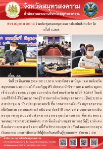 วันที่ 29 มิถุนายน 2565 เวลา 13.30 น. นางรภัสสา พานิกุล แรงงานจังหวัดสมุทรสงคราม มอบหมายให้ นางกัญญาศิริ นัยอรรถ นักวิชาการแรงงานชำนาญการ เข้าร่วมประชุมคณะอนุกรรมการประกันสังคมจังหวัด ครั้งที่ 3/2565 โดยมี นายศิริศักดิ์ ศิริมังคะลา รองผู้ว่าราชการจังหวัดสมุทรสงคราม เป็นประธาน การประชุม ณ ห้องประชุมบางคนที ชั้น 3ศาลากลางจังหวัดสมุทรสงครามเพื่อรับทราบ รายงานผลการดำเนินงาน ประจำปี 2565 รายงานสถานะการเงินลงทุนกองทุนประกันสังคม และกองทุนเงินทดแทน ข้อเสนอแนะของคณะกรรมการประกันสังคม การเพิ่มเงินบำนาญชราภาพกรณีผู้ประกันตนถึงแก่ความตาย การติดตามหนี้ค้างชำระกองทุนประกันสังคมและกองทุนเงินทดแทน และการพิจารณาให้ผู้ประกันตนเป็นผู้ทุพพลภาพ จำนวน 2 ราย