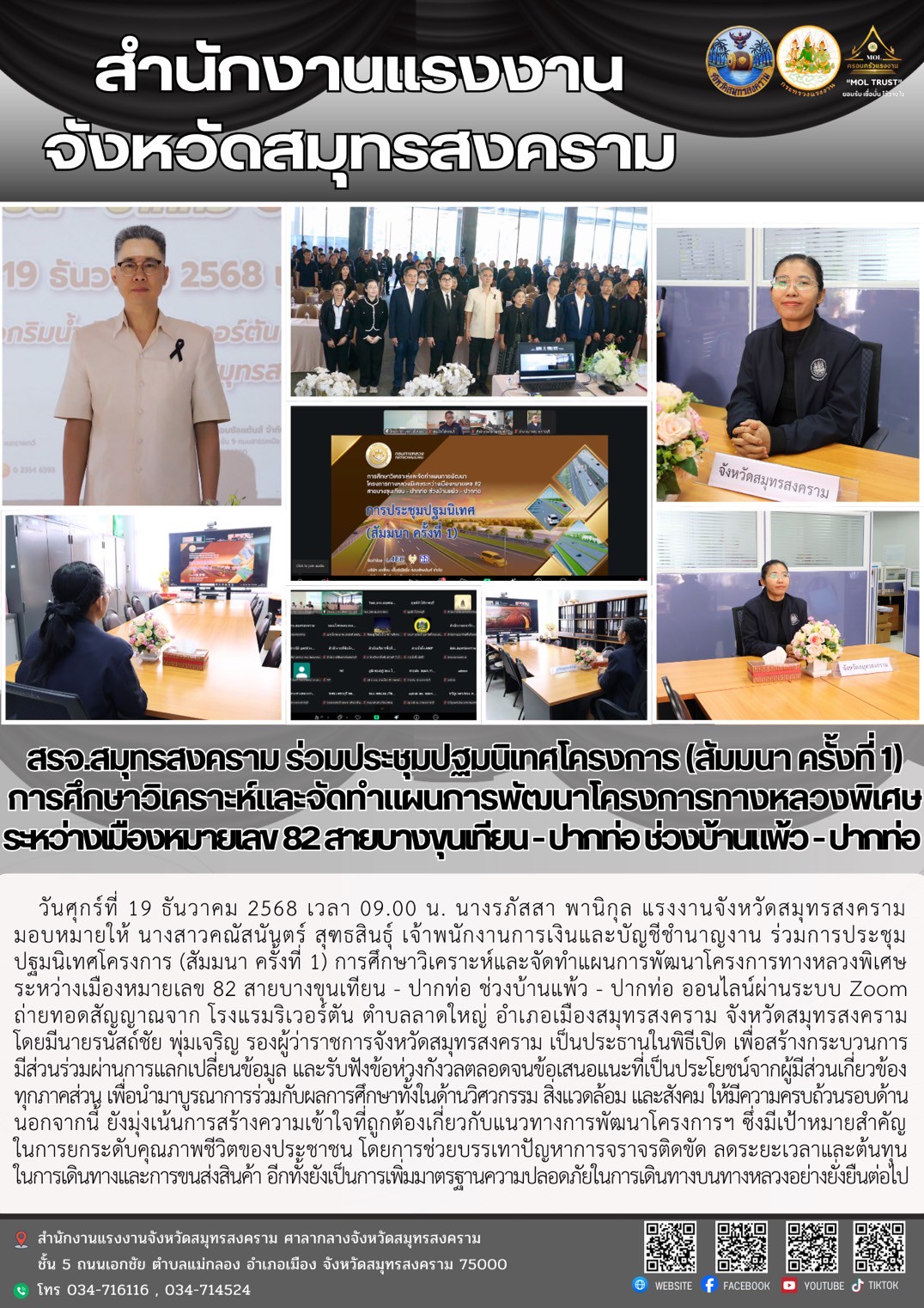 วันศุกร์ที่ 19 ธันวาคม 2568 เวลา 09.00 น. นางรภัสสา พานิกุล แรงงานจังหวัดสมุทรสงคราม