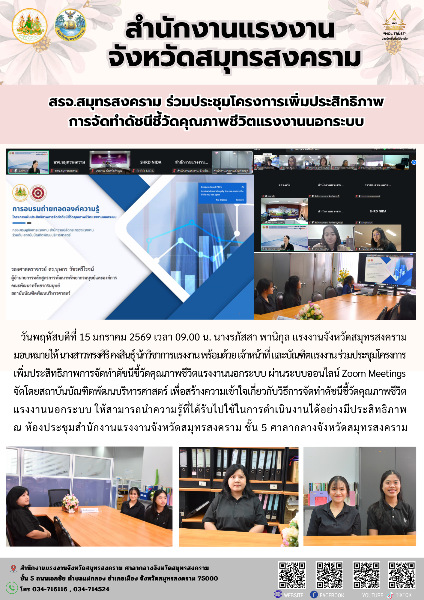 วันพฤหัสบดีที่ 15 มกราคม 2569 เวลา 09.00 น. นางรภัสสา พานิกุล แรงงานจังหวัดสมุทรสงคราม