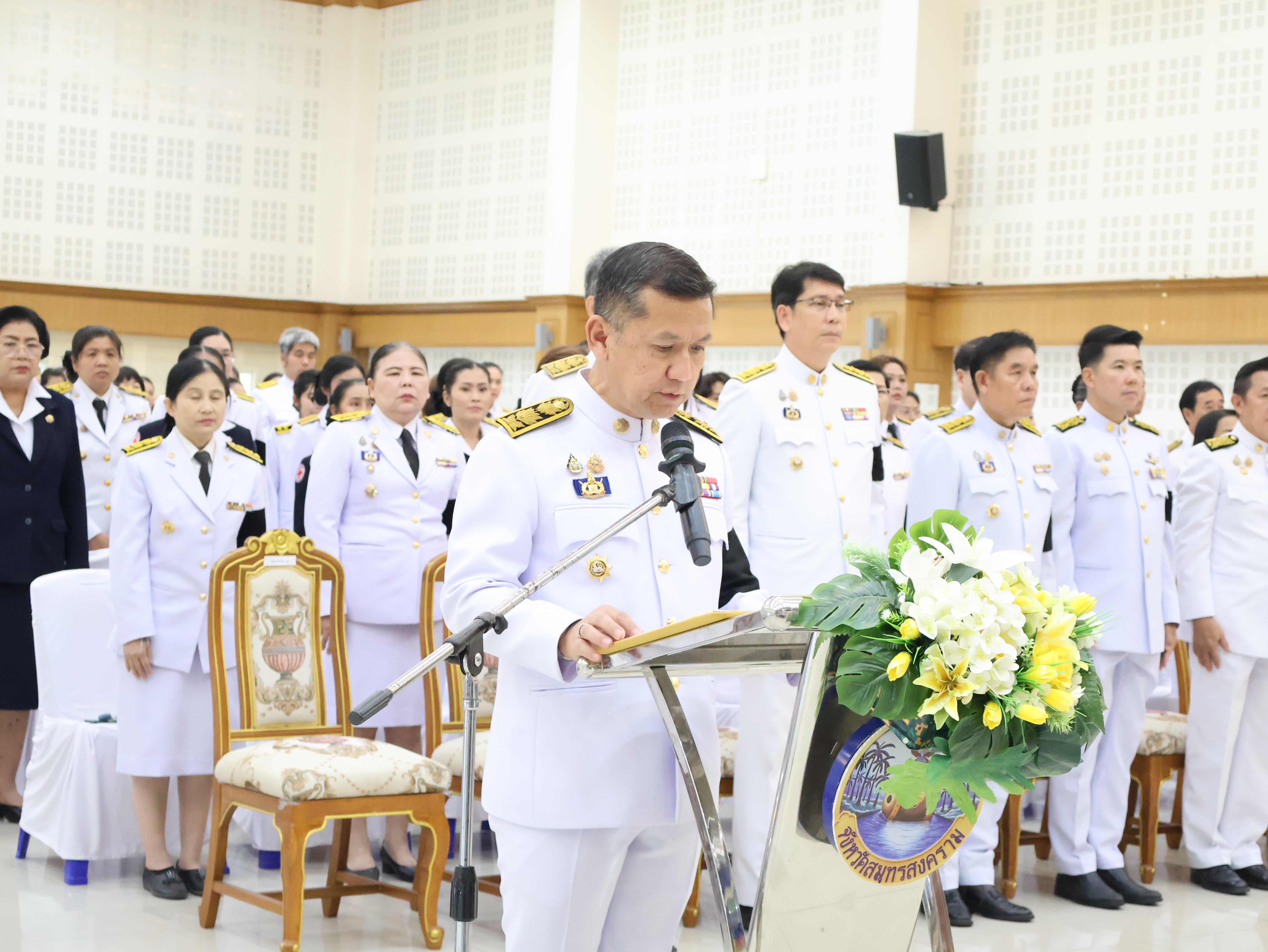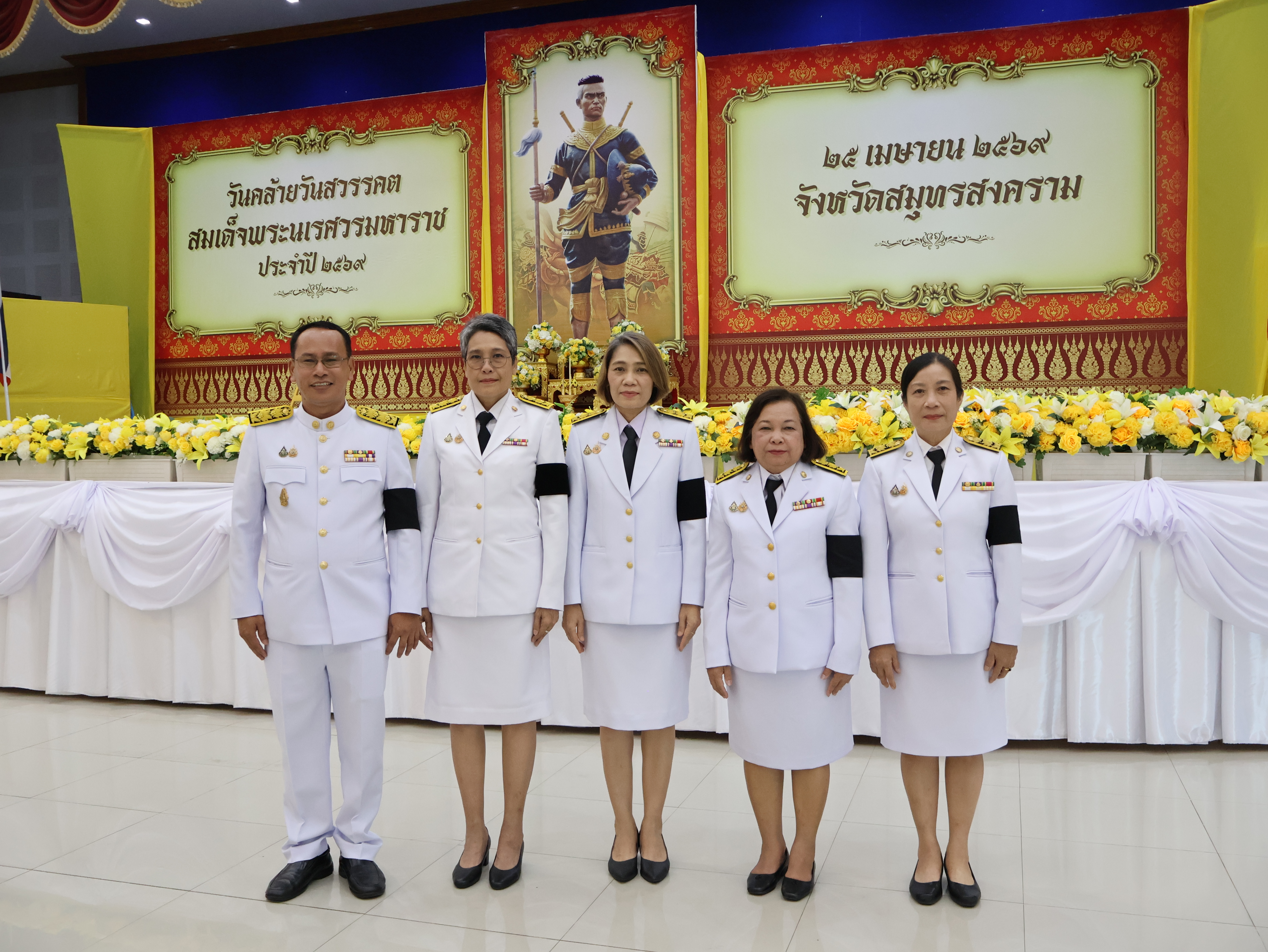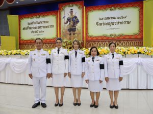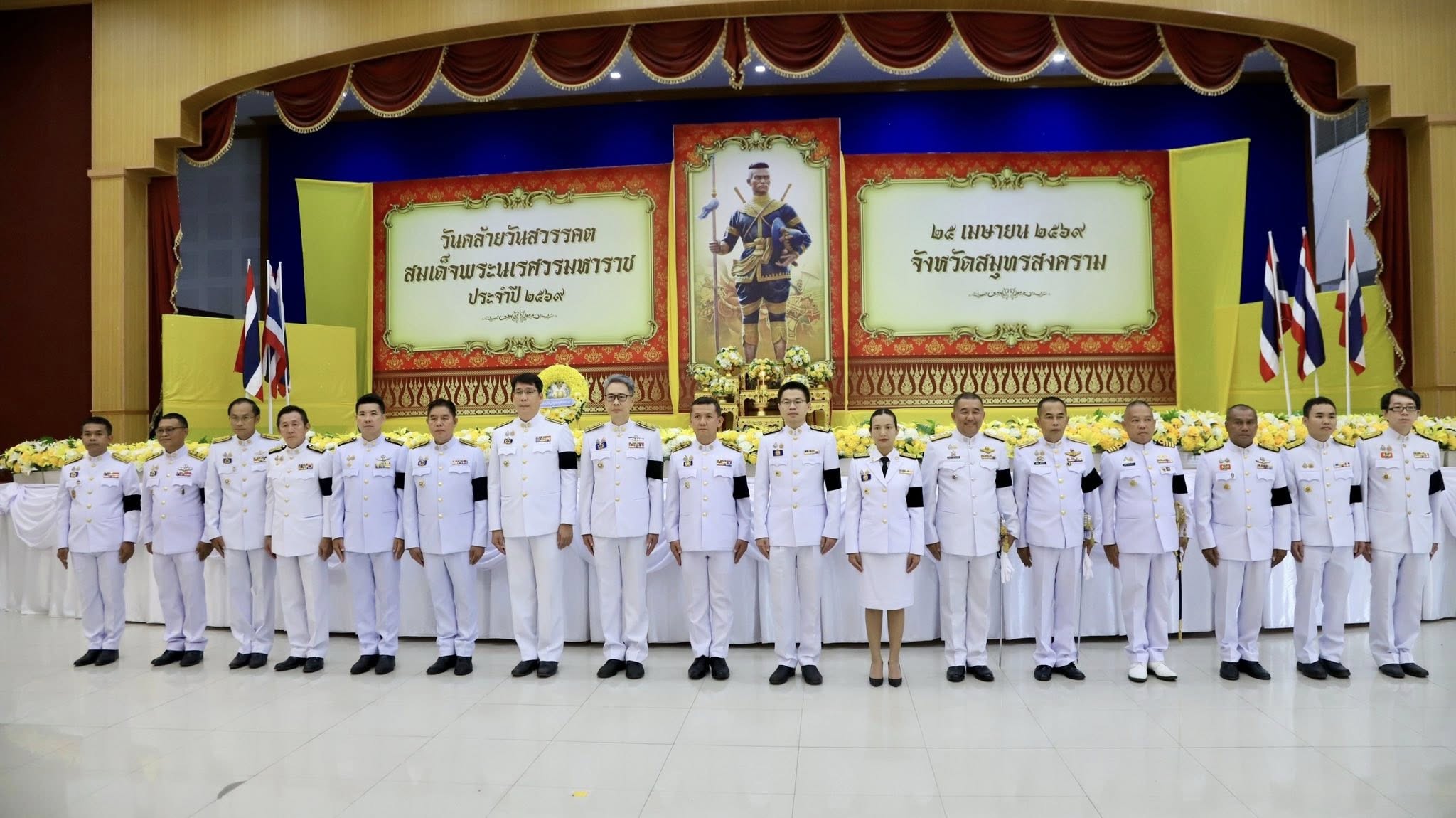 วันศุกร์ที่ 24 เมษายน 2569 เวลา 10.00 น. นางรภัสสา พานิกุล แรงงานจังหวัดสมุทรสงคราม มอบหมายให้ นางสาวลภัสนันท์ ลัดดาพรสวัสดิ์ นักวิชาการแรงงานชำนาญการ ร่วมพิธีถวายราชสักการะเนื่องในวันคล้ายวันสวรรคตสมเด็จพระนเรศวรมหาราช ประจำปี 2569 โดยมี นายชยชัย แสงอินทร์ ผู้ว่าราชการจังหวัดสมุทรสงคราม เป็นประธานในพิธี พร้อมด้วย นายรนัสถ์ชัย พุ่มเจริญ รองผู้ว่าราชการจังหวัดสมุทรสงคราม หัวหน้าส่วนราชการ ข้าราชการ และเจ้าหน้าที่ ร่วมพิธีดังกล่าว ณ หอประชุมพิพัฒน์มงคล องค์การบริหารส่วนจังหวัดสมุทรสงคราม