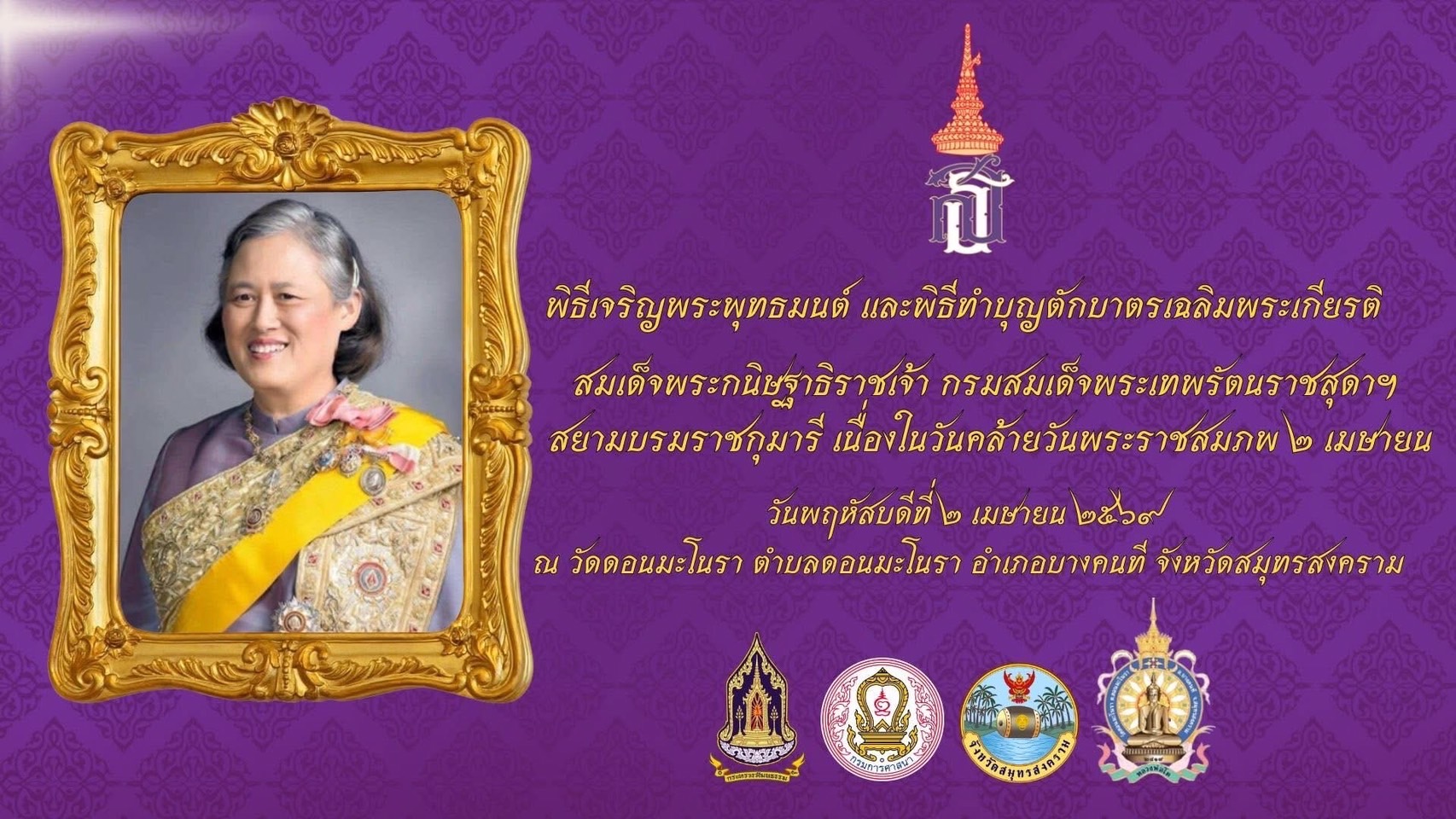 เนื่องในวันคล้ายวันพระราชสมภพ 2 เมษายน โดยมี พระครูสมุทรวัฒนาภรณ์ (เจริญ คเวสโก) เจ้าอาวาสวัดดอนมะโนรา