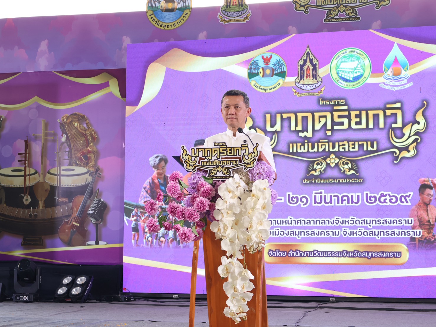 วันศุกร์ที่ 20 มีนาคม 2569 เวลา 17.00 น. นางรภัสสา พานิกุล แรงงานจังหวัดสมุทรสงคราม มอบหมายให้้นางสาวคณัสนันตร์ สุฑธสินธุ์ เจ้าพนักงานการเงินและบัญชีชำนาญงาน พร้อมด้วยนางสาวธีรจุฑา รสหวาน บัณฑิตแรงงานอำเภอเมืองสมุทรสงคราม ร่วมพิธีเปิดโครงการนาฏดุริยกวีแผ่นดินสยาม ประจำปี พ.ศ. 2569 โดยมี นายชยชัย แสงอินทร์ ผู้ว่าราชการจังหวัดสมุทรสงคราม เป็นประธานในพิธีเปิด พร้อมด้วยนายรนัสถ์ชัย พุ่มเจริญ รองผู้ว่าราชการจังหวัดสมุทรสงคราม หัวหน้าส่วนราชการ เข้าร่วมพิธีด้วย จัดโดย สำนักงานวัฒนธรรมจังหวัดสมุทรสงคราม ทั้งนี้ งานมีกำหนดจัดขึ้นในระหว่างวันที่ 20 – 21 มีนาคม 2569 ณ ลานหน้าศาลากลางจังหวัดสมุทรสงคราม อำเภอเมืองสมุทรสงคราม จังหวัดสมุทรสงคราม เพื่อส่งเสริมการสร้างมูลค่าเพิ่มทางเศรษฐกิจการท่องเที่ยว โดยใช้กลไก Soft Power ด้านวัฒนธรรม อันจะนำไปสู่การกระตุ้นการท่องเที่ยว และกระจายรายได้สู่ผู้ประกอบการภาคการท่องเที่ยว ชุมชน และประชาสัมพันธ์
