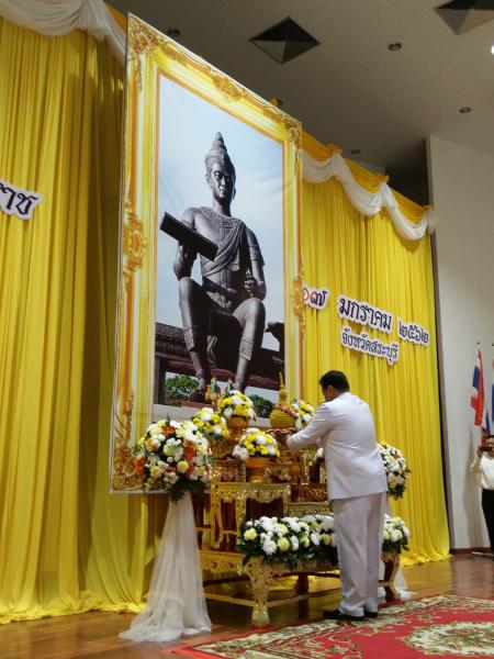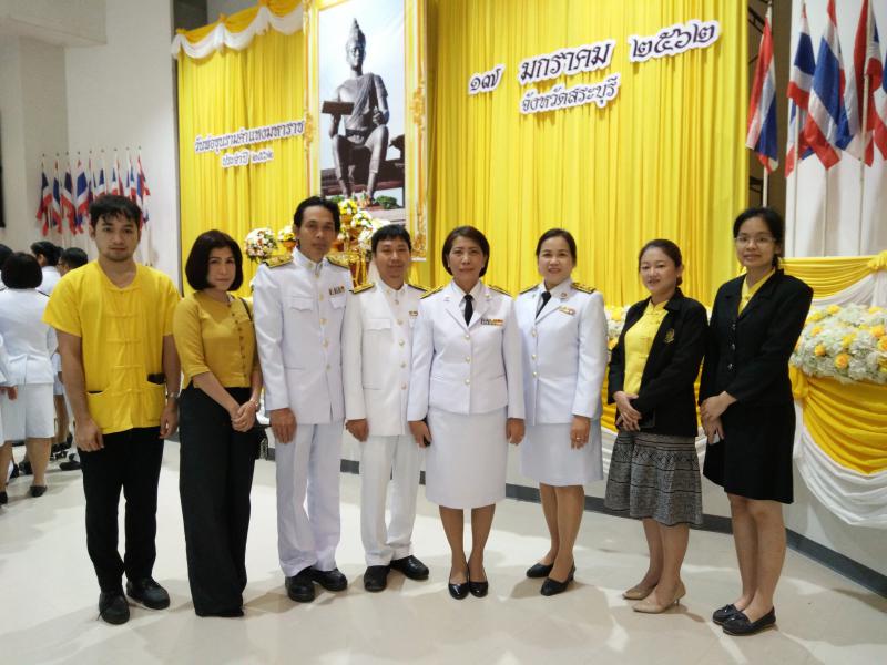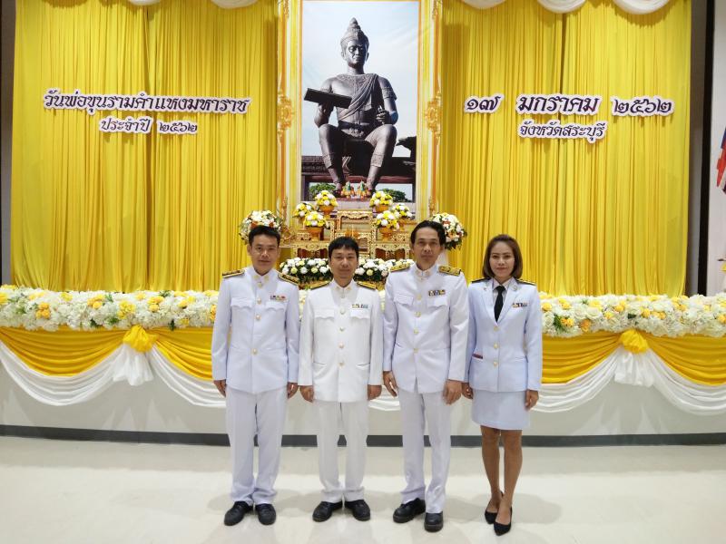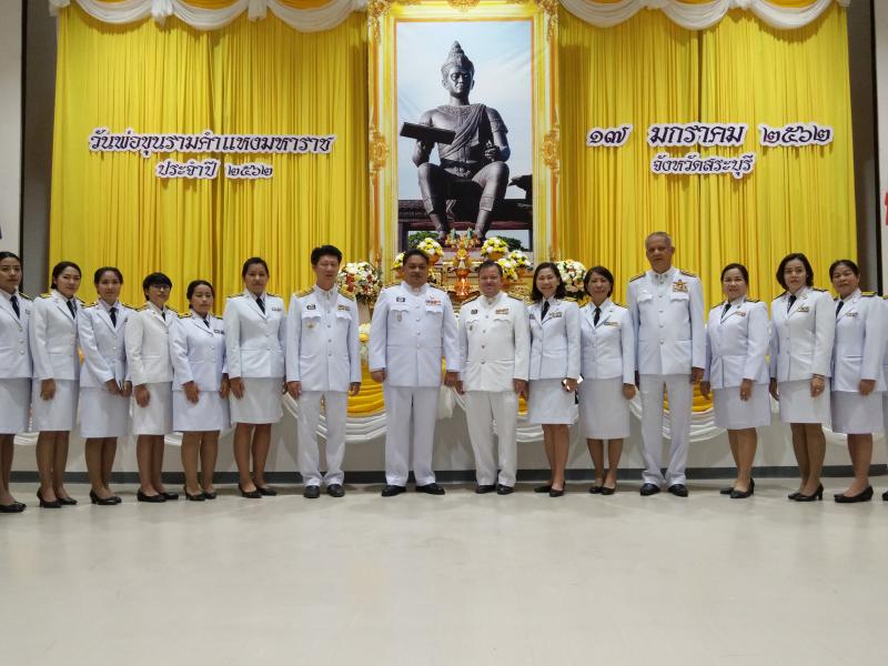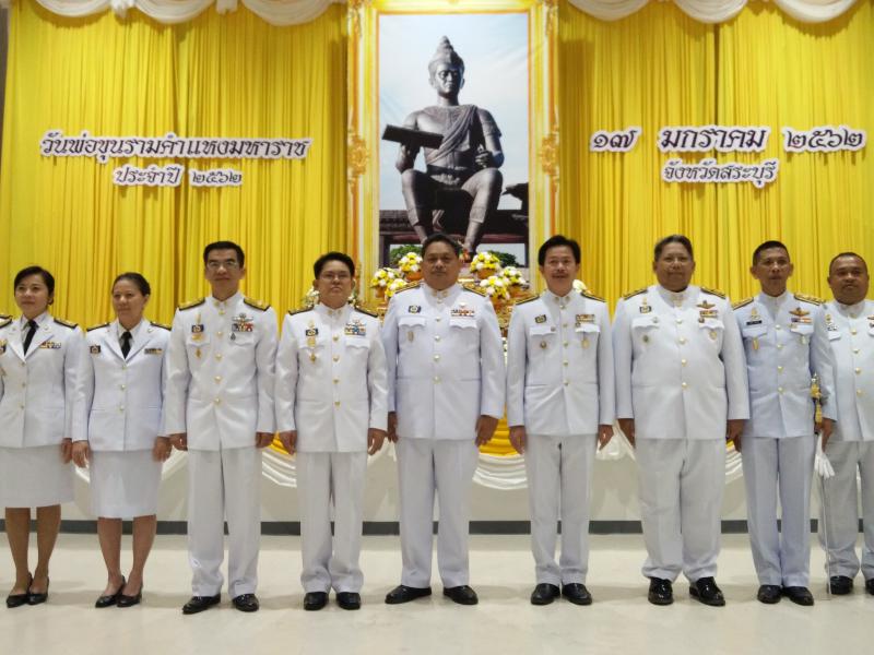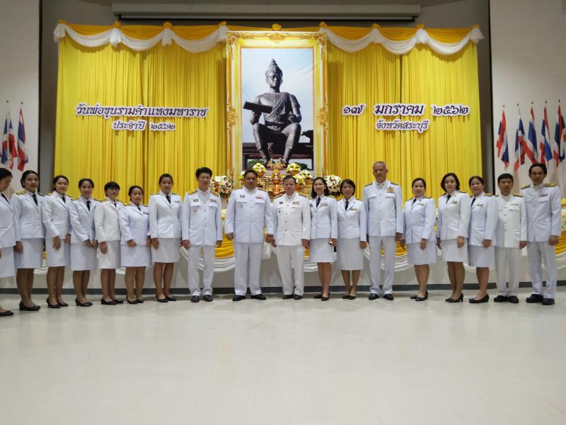 วันที่ 17 มกราคม 2562 เวลา 08.00 น. นางสาวรัตนา ทองกลับ แรงงานจังหวัดสระบุรี มอบหมายให้นายวีรจิตต์ สิทธิชัย นักวิชาการแรงงานชำนาญการ พร้อมด้วยหน่วยงานสังกัดกระทรวงแรงงานจังหวัดสระบุรี เข้าร่วมงานพิธี “วันพ่อขุนรามคำแหงมหาราช” ประจำปี 2562 เพื่อรำลึกถึงพระมหากรุณาธิคุณของพ่อขุนรามคำแหงมหาราชที่มีต่อประชาชนชาวไทย ณ หอประชุมศูนย์ราชการจังหวัดสระบุรี โดยมีนายแมนรัตน์ รัตนสุคนธ์ เป็นประธานในพิธี