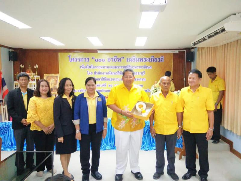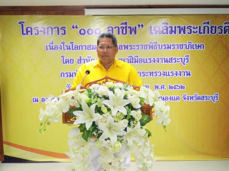 วันที่ 25 กรกฎาคม 2562 เวลา 09.30 น. นางสาวรัตนา ทองกลับ แรงงานจังหวัดสระบุรี ร่วมเป็นเกียรติในพิธีเปิดการฝึกอบรมตามโครงการ “101 อาชีพ” เฉลิมพระเกียรติเนื่องในโอกาสมหามงคลพระราชพิธีบรมราชาภิเษก ณ ห้องประชุมองค์การบริหารส่วนตำบลหนองแขม อำเภอหนองแค จังหวัดสระบุรี โดยมีนายสมภพ สมิตะศิริ รองผู้ว่าราชการจังหวัดสระบุรี เป็นประธาน