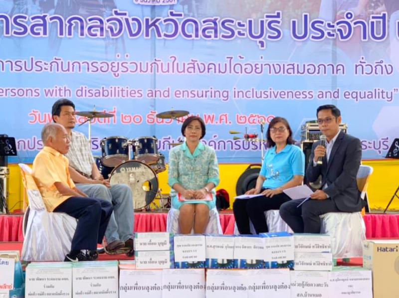 วันที่ 20 ธันวาคม 2561 เวลา 09.00 น. นางสาวรัตนา ทองกลับ แรงงานจังหวัดสระบุรี มอบหมายให้นายอรรถพล ขันธวิธิ นักวิชาการแรงงานชำนาญการ และนางสาวจุฬารัตน์ บรรพต เจ้าหน้าที่วิเคราะห์ดัชนีชี้วัดภาวะแรงงานฯ ร่วมจัดงานวันคนพิการสากลจังหวัดสระบุรี ประจำปี 2561 "การเสริมพลิงคนพิการและประกันการอยู่ร่วมกันในสังคมได้อย่างเสมอภาค ทั่วถึงและเป็นธรรม” ซึ่งจัดโดยสำนักงานพัฒนาสังคมและความมั่นคงของมนุษย์จังหวัดสระบุรี ณ อาคารโดมอเนกประสงค์ บริเวณสนามกีฬาองค์การบริหารส่วนจังหวัดสระบุรี โดยมีนายเกียรติศักดิ์ ตรงศิริ รองผู้ว่าราชการจังหวัดสระบุรี เป็นประธาน