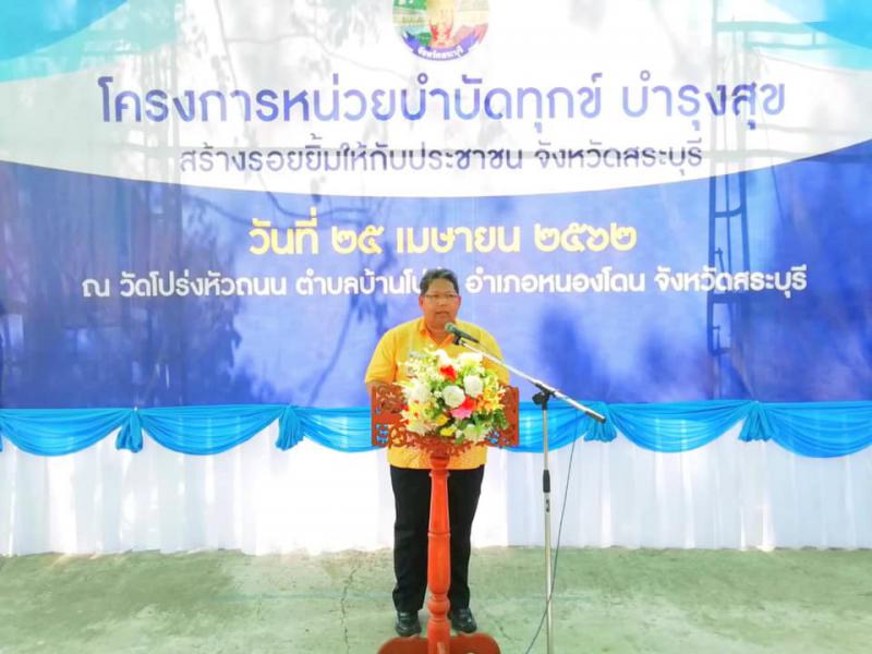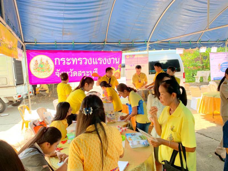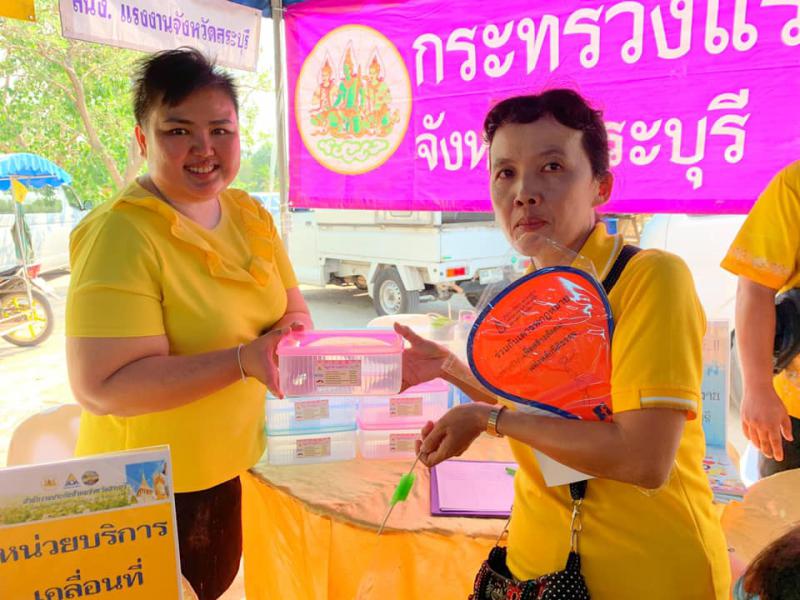 เมื่อวันที่ 25 เมษายน 2562 เวลา 08.30 น. นางสาวรัตนา ทองกลับ แรงงานจังหวัดสระบุรี มอบหมายให้นางสาวจุฬารัตน์ บรรพต เจ้าหน้าที่วิเคราะห์ดัชนีชี้วัดภาวะแรงงานฯ สำนักงานแรงงานจังหวัดสระบุรี พร้อมด้วยเจ้าหน้าที่หน่วยงานสังกัดกระทรวงแรงงานจังหวัดสระบุรี และศูนย์ช่างประจำชุมชนเทิดไท้องค์ราชันบูรณาการร่วมจัดกิจกรรมหน่วยบำบัดทุกข์บำรุงสุขสร้างรอยยิ้มประชาชน ภายในงานมีนิทรรศการให้ความรู้กฎหมายแรงงาน ตำแหน่งงานว่าง บริการซ่อมบำรุงยานพาหนะ (เปลี่ยนถ่ายน้ำมันเครื่องรถจักรยานยนต์) บริการสมัครประกันสังคม มาตรา 40 และจัดทดสอบรณรงค์สร้างวัฒนธรรมความปลอดภัยโครงการ Safety Thailand ซึ่งมีประชาชนร่วมกิจกรรมเป็นจำนวนมาก ณ บริเวณวัดบ้านโปร่งหัวถนน หมู่ที่ 4 ตำบลบ้านโปร่ง อำเภอหนองโดน จังหวัดสระบุรี โดยมีนายสมภพ สมิตะสิริ รองผู้ว่าจังหวัดสระบุรี เป็นประธาน