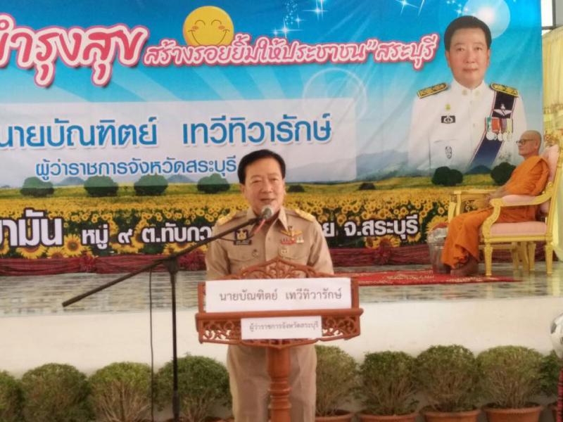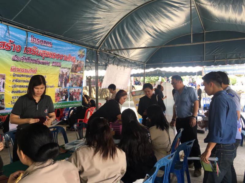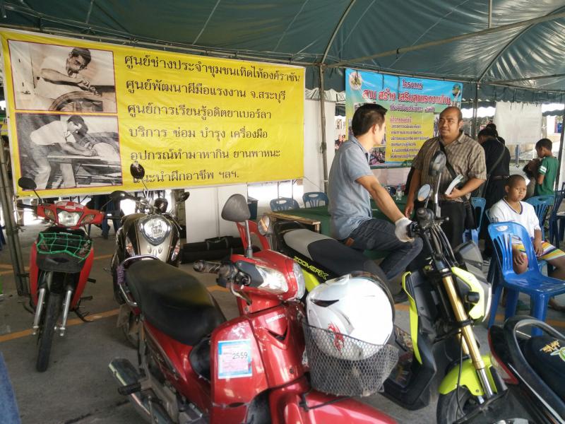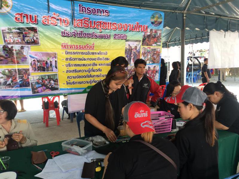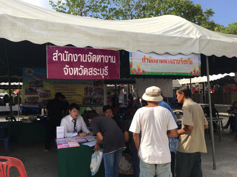 เมื่อวันที่ 20 เมษายน 2560 สำนักงานแรงงานจังหวัดสระบุรี พร้อมหน่วยงานสังกัดกระทรวงแรงงานจังหวัดสระบุรี และศูนย์ช่างประจำชุมชนเทิดไท้องค์ราชัน บูรณาการร่วมจัดกิจกรรมโครงการสาน – สร้าง – เสริมสุขแรงงานไทย ครั้งที่ 6/2560 และกิจกรรมหน่วยบำบัดทุกข์บำรุงสุขสร้างรอยยิ้มประชาชน ภายในงานมีนิทรรศการเฉลิมพระเกียรติ ให้ความรู้กฎหมายแรงงาน บริการซ่อมบำรุงยายพาหนะ (เปลี่ยนถ่ายน้ำมันเครื่องรถจักรยานยนต์) สาธิตการประกอบอาชีพผลิตภัณฑ์จากเครื่องหนัง (กระเป๋าใส่เอกสาร) และจัดทดสอบรณรงค์สร้างวัฒนธรรมความปลอดภัยโครงการ Safety Thailand มีประชาชนร่วมกิจกรรมและสนใจเข้าร่วมฝึกอาชีพเป็นจำนวนมาก ณ วัดเขามัน ต.ทับกวาง อ.แก่งคอย จ.สระบุรี โดยมีนายบัณฑิตย์ เทวีทิวารักษ์ ผู้ว่าราชการจังหวัดสระบุรี เป็นประธาน