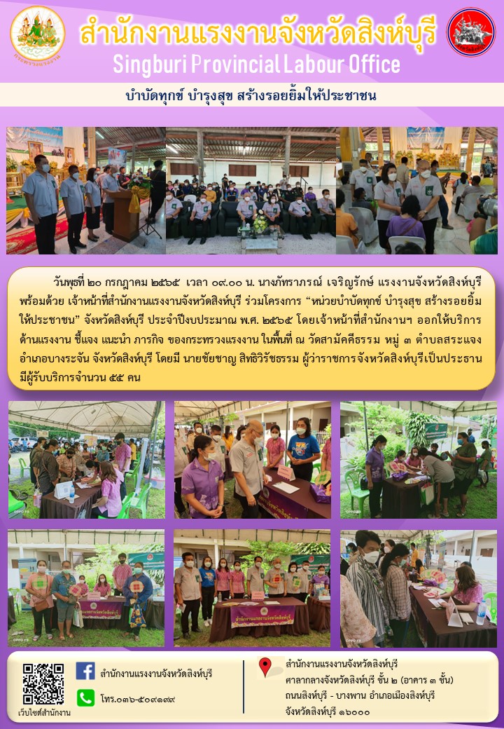 สรจ.สิงห์บุรีร่วมโครงการ “หน่วยบำบัดทุกข์ บำรุงสุข สร้างรอยยิ้มให้ประชาชน” ประจำปี 2565