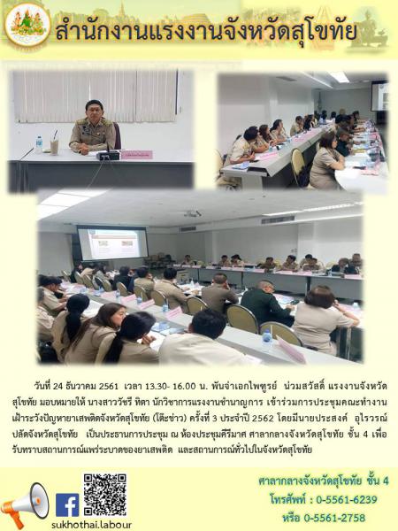 สรจ.สุโขทัยเข้าร่วมการประชุมคณะทำงานเฝ้าระวังปัญหายาเสพติดจังหวัดสุโขทัย (โต๊ะข่าว) ครั้งที่ 3 ประจำปี 2562