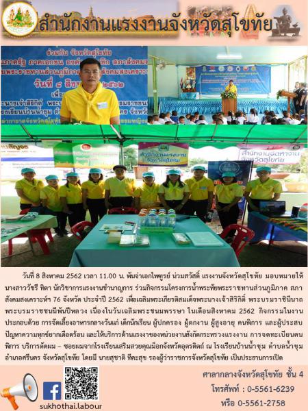 สรจ.สุโขทัย ร่วมกิจกรรมโครงการน้ำพระทัยพระราชทานส่วนภูมิภาค สภาสังคมสงเคราะห์ฯ 76 จังหวัด ประจำปี 2562