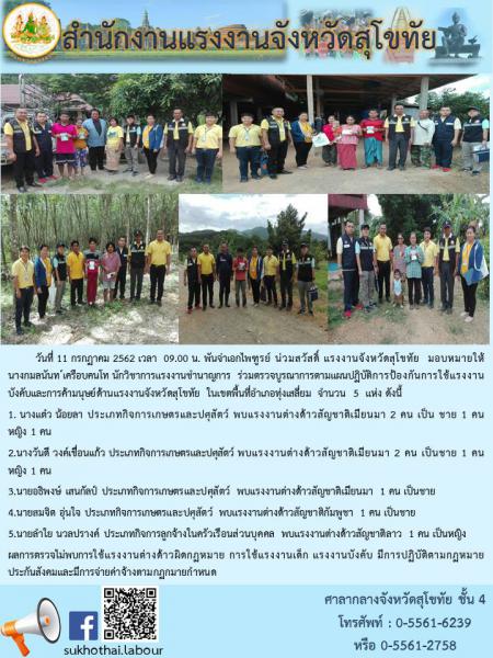 สรจ.สุโขทัย ร่วมตรวจบูรณาการตามแผนปฏิบัติการป้องกันการใช้แรงงานบังคับและการค้ามนุษย์ด้านแรงงานจังหวัดสุโขทัย