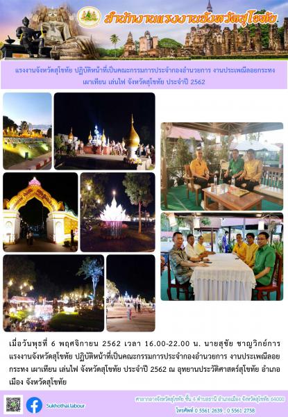 สรจ.สุโขทัย ร่วมปฏิบัติหน้าที่เป็นคณะกรรมการประจำกองอำนวยการ งานประเพณีลอยกระทง เผาเทียน เล่นไฟ จังหวัดสุโขทัย ประจำปี 2562