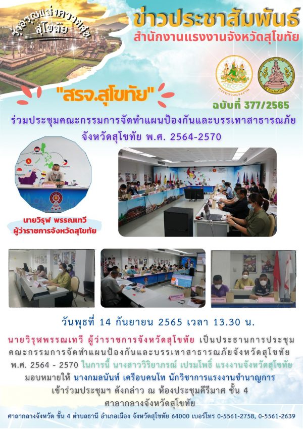 สรจ.สุโขทัย ร่วมประชุมคณะกรรมการจัดทำแผนป้องกันและบรรเทาสาธารณภัยจังหวัดสุโขทัย พ.ศ. 2564-2570