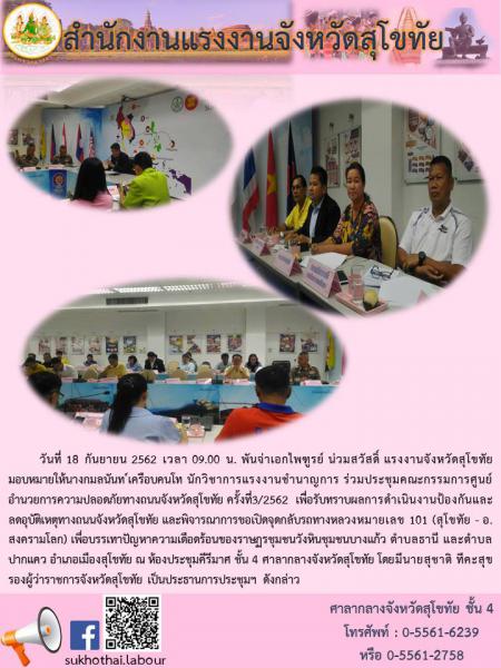 สรจ.สุโขทัย ร่วมประชุมคณะกรรมการศูนย์อำนวยการความปลอดภัยทางถนนจังหวัดสุโขทัย ครั้งที่3/2562