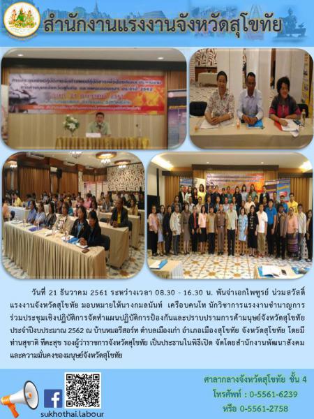 สรจ.สุโขทัย ร่วมประชุมเชิงปฏิบัติการจัดทำแผนปฏิบัติการป้องกันและปราบปรามการค้ามนุษย์จังหวัดสุโขทัย ประจำปีงบประมาณ 2562