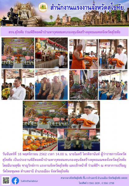 สรจ.สุโขทัย ร่วมพิธีทอดผ้าป่ามหากุศลสมทบกองทุนจัดสร้างพุทธมณฑลจังหวัดสุโขทัย