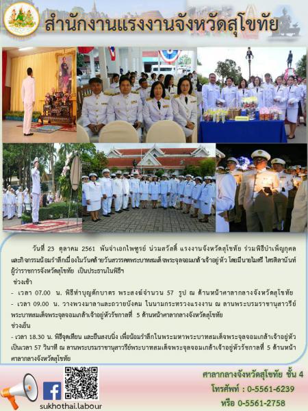 สรจ.สุโขทัย ร่วมพิธีบำเพ็ญกุศลและกิจกรรมน้อมรำลึกเนื่องในวันคล้ายวันสวรรคตพระบาทสมเด็จพระจุลจอมเกล้าเจ้าอยู่หัว