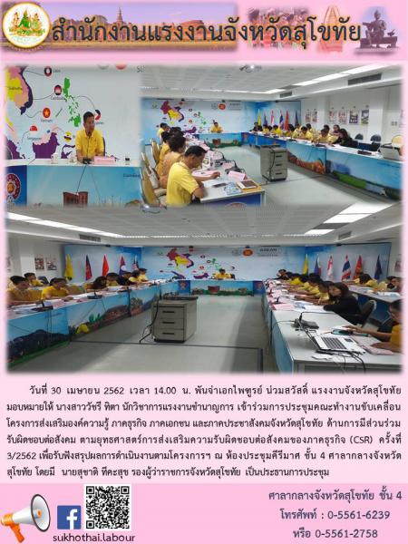 สรจ.สุโขทัย เข้าร่วมการประชุมคณะทำงานขับเคลื่อนโครงการส่งเสริมองค์ความรู้ ภาคธุรกิจ ภาคเอกชน และภาคประชาสังคมจังหวัดสุโขทัย