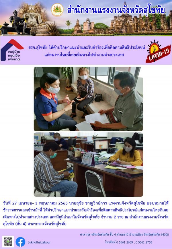 สรจ.สุโขทัย ให้คำปรึกษาแนะนำและรับคำร้องเพื่อติดตามสิทธิประโยชน์แก่คนงานไทยที่เคยเดินทางไปทำงานต่างประเทศ