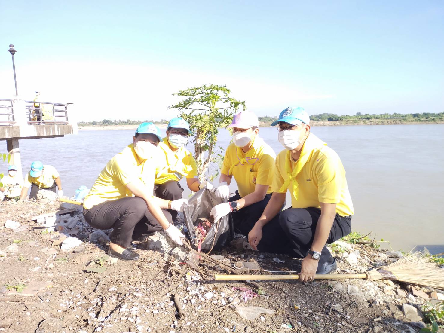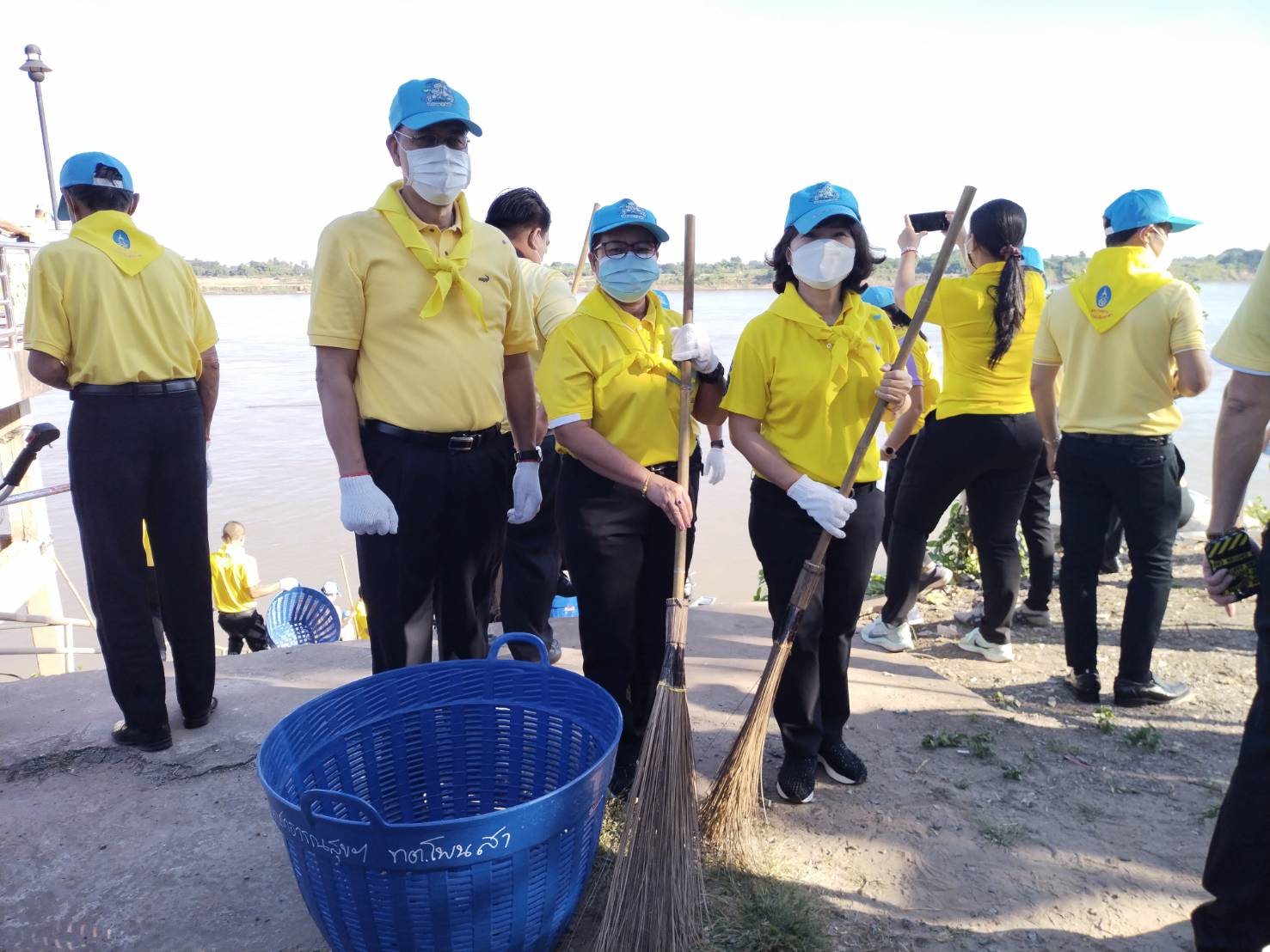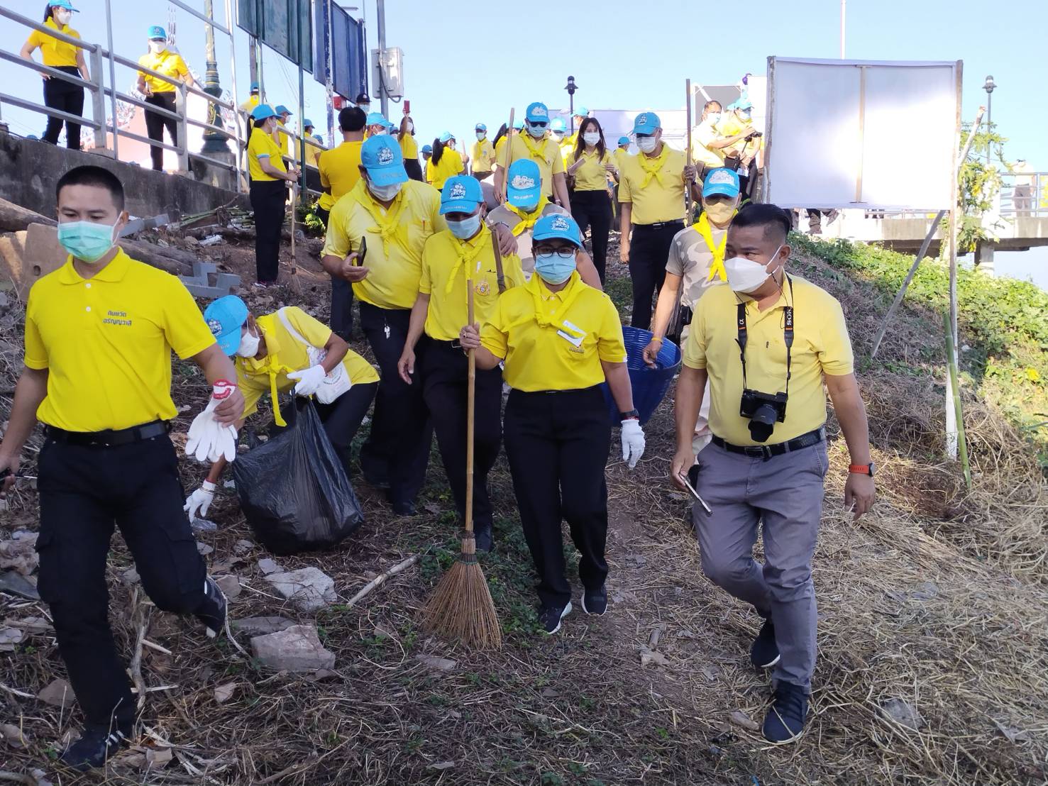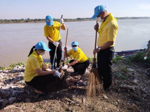 วันที่ 25 พฤศจิกายน 2564 เวลา 08.30 น. นางสมหมาย เทียมกัน แรงงานจังหวัดหนองคาย พร้อมด้วยเจ้าหน้าที่สำนักงานแรงงานจังหวัดหนองคาย เข้าร่วม “กิจกรรมพัฒนาสิ่งแวดล้อมและบำเพ็ญประโยชน์ถนนและพนังริมแม่น้ำโขง” ตามภารกิจจิตอาสาพัฒนาเพื่อน้อมรำลึกในพระมหากรุณาธิคุณ เนื่องในวันสมเด็จพระมหาธีรราชเจ้า ณ ลานวัฒนธรรมเทศบาลตำบลโพนสา ตำบลโพนสา อำเภอท่าบ่อ จังหวัดหนองคาย โดยมีนายมนต์สิทธิ์ ไพศาลธนวัฒน์ ผู้ว่าราชการจังหวัดหนองคายเป็นประธานในพิธี