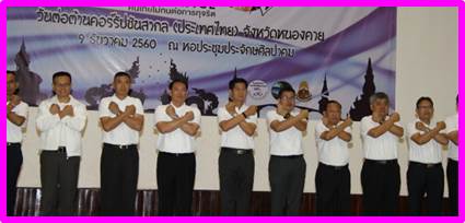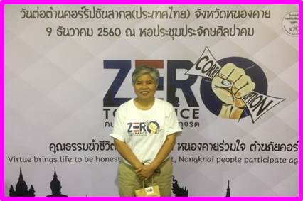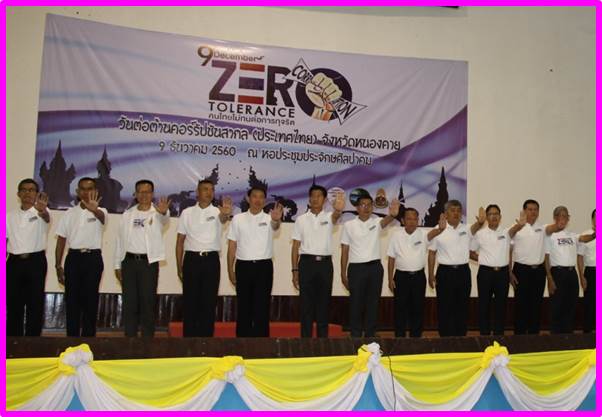 เมื่อวันที่ 9 ธันวาคม 2560 นายวิชิตร สุวรรณมาก แรงงานจังหวัดหนองคาย มอบหมายให้นางสาววาสนา ศิริทองสุข นักวิชาการแรงงานชำนาญการ เข้าร่วมงานวันต่อต้านคอร์รัปชันสากล ประเทศไทย จังหวัดหนองคาย ณ หอประชุมประจักษศิลปาคม ศูนย์ราชการจังหวัดหนองคาย อำเภอเมืองหนองคาย จังหวัดหนองคาย เพื่อสร้างพลังทางสังคมที่ไม่ทนต่อการทุจริต และยกระดับค่าดัชนีการรับรู้การทุจริต โดยมีนายรณชัย จิตรวิเศษ ผู้ว่าราชการจังหวัดหนองคาย เป็นประธานในงานดังกล่าว