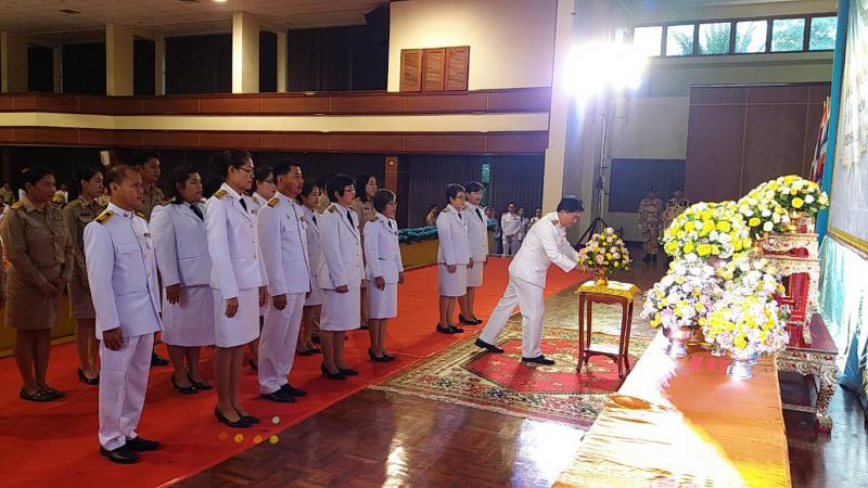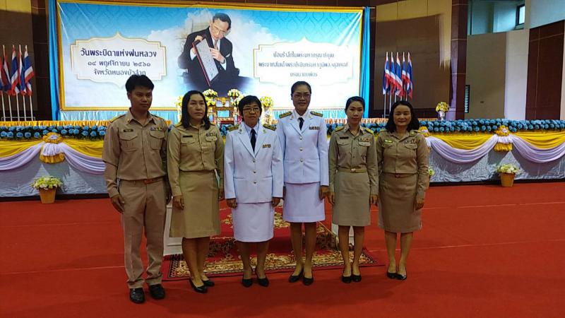 วันพุธที่ 14 พฤศจิกายน 2561 เวลา 07.30 น. หัวหน้าส่วนราชการสังกัดกระทรวงแรงงานจังหวัดหนองบัวลำภูและหัวหน้าส่วนราชการในจังหวัด พร้อมทั้งภาคเอกชน ร่วมพิธีวางพานพุ่มดอกไม้สด เนื่องใน"วันพระบิดาแห่งฝนหลวง" เพื่อน้อมรำลึกในพระมหากรุณาธิคุณพระบาทสมเด็จพระปรมินทรมหาภูมิพลอดุลยเดช บรมนาถบพิตร ณ หอประชุมอนาลโย ศูนย์ราชการจังหวัดหนองบัวลำภู โดย..นายชัยธวัช เนียมศิริ ผู้ว่าราชการจังหวัดหนองบัวลำภู เป็นประธานในพิธี