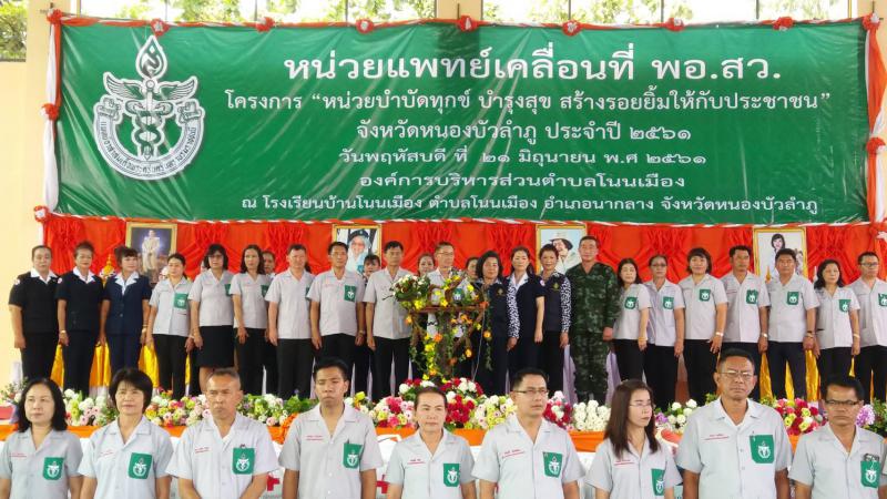 วันพฤหัสบดีที่ 21 มิถุนายน 2561 เวลา 09.30 น. นายอำนาจ เชิงไว แรงงานจังหวัดหนองบัวลำภู นายประทีป นุ่นชื่น ผู้อำนวยการสำนักงานพัฒนาฝีมือแรงงานหนองบัวลำภู และผู้แทนหน่วยงานสังกัดกระทรวงแรงงานจังหวัดหนองบัวลำภูพร้อมด้วยหัวหน้าส่วนราชการในจังหวัด ร่วมออกหน่วยแพทย์เคลื่อนที่ พอ.สว. และคงการออกหน่วยบำบัดทุกข์บำรุงสุขสร้างรอยยิ้มให้ประชาชน ณ โรงเรียนบ้านโนนเมือง หมู่ที่ 12 ตำบลโนนเมือง อำเภอนากลาง จังหวัดหนองบัวลำภู โดย…นายธนากร อึ้งจิตรไพศาล ผู้ว่าราชการจังหวัดหนองบัวลำภู เป็นประธานเปิดโครงการ