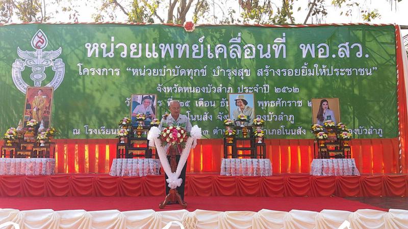 วันอังคารที่ 25 ธันวาคม 2561 เวลา 09.00 น. แรงงานจังหวัดหนองบัวลำภู ร่วมโครงการหน่วยแพทย์เคลื่อนที่ พอ.สว. และโครงการ "หน่วยบำบัดทุกข์ บำรุงสุข สร้างรอยยิ้มให้ประชาชน" ณ โรงเรียนบ้านหนองบัวเงิน หมู่ที่ 3 ตำบลปรางกู่ อำเภอโนนสัง จังหวัดหนองบัวลำภู โดย… นายชัยธวัช เนียมศิริ ผู้ว่าราชการจังหวัดหนองบัวลำภู เป็นประธานเปิดโครงการ