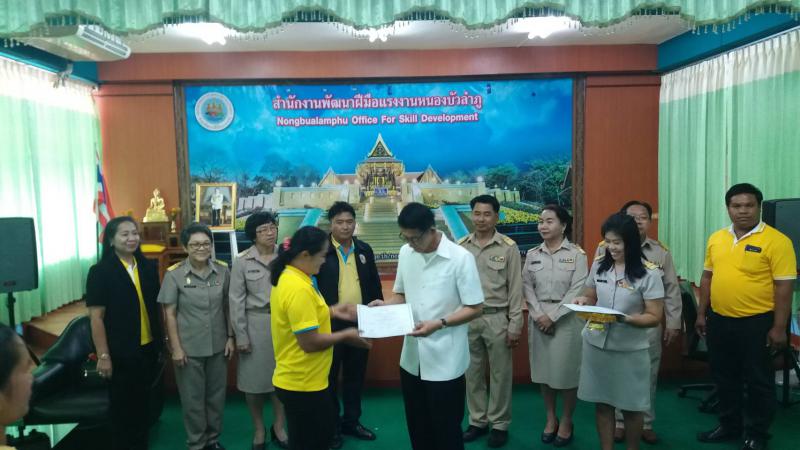 วันจันทร์ที่ 9 กรกฎาคม 2561 เวลา 13.30 น. นายอำนาจ เชิงไว แรงงานจังหวัดหนองบัวลำภู และหัวหน้าส่วนราชการสังกัดกระทรวงแรงงานจังหวัดหนองบัวลำภู ร่วมพิธีเปิดการฝึกอบรม จำนวน 5 สาขา ตามโครงการเพิ่มศักยภาพผู้มีรายได้น้อยที่ลงทะเบียนสวัสดิการแห่งรัฐ เพื่อสร้างงานสร้างอาชีพ เพิ่มรายได้ และความมั่นคงในชีวิตประจำปีงบประมาณ 2561 และพิธีปิด และมอบวุฒิบัตร ผู้จบการฝึกอบรม การดูแลผู้สูงอายุ หลักสูตรฝึกยกระดับฝีมือแรงงาน ณห้องประชุมอาคารฝึกอบรม สำนักงานพัฒนาฝีมือแรงงานหนองบัวลําภู โดย นายเวียงชัย แก้วพินิจ รองผู้ว่าราชการจังหวัดหนองบัวลำภูเป็นประธานเปิดโครงการ และปิดการฝึกอบรมพร้อมทั้งมอบวุฒิบัตรฯ