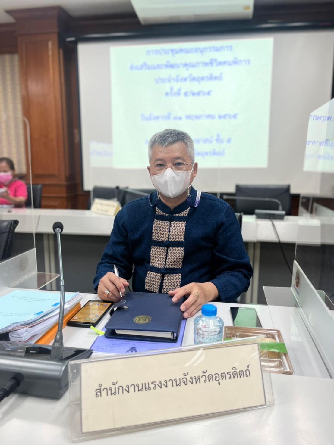 วันอังคารที่ 31 พฤษภาคม 2565 เวลา 09.30 น. นายพยงค์ ยาเภา รองผู้ว่าราชการจังหวัดอุตรดิตถ์ เป็นประธานการประชุมคณะอนุกรรมการส่งเสริม และพัฒนาคุณภาพชีวิตคนพิการประจำจังหวัดอุตรดิตถ์ ครั้งที่ 5/2565 เพื่อพิจารณาอนุมัติการขอกู้ยืมเงินคนพิการและผู้ดูแลคนพิการ และโครงการขอรับการสนับสนุนจากกองทุนฯ ในการนี้ นายอุรุพงษ์ เวชศรี แรงงานจังหวัดอุตรดิตถ์ เข้าร่วมการประชุมฯ ณ ห้องประชุมศิลาอาสน์ ชั้น 5 ศาลากลางจังหวัดอุตรดิตถ์ อำเภอเมืองอุตรดิตถ์ จังหวัดอุตรดิตถ์