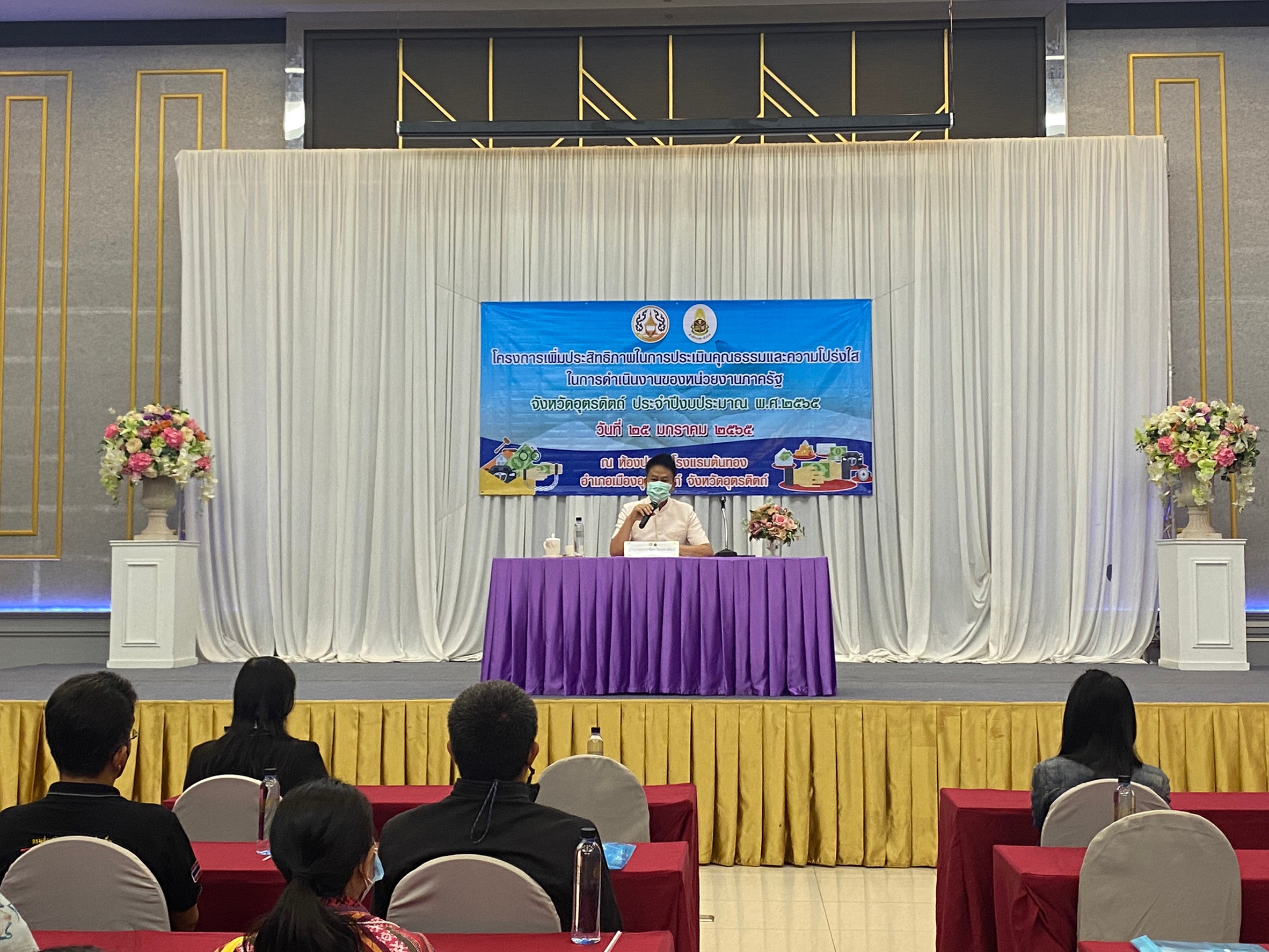วันอังคารที่ 25 มกราคม 2565 เวลา 08.00 น. นายอุรุพงษ์ เวชศรี แรงงานจังหวัดอุตรดิตถ์ ร่วมประชุม ” โครงการเพิ่มประสิทธิภาพในการประเมินคุณธรรมและความโปร่งใสในการดำเนินงานของหน่วยงานภาครัฐ จังหวัดอุตรดิตถ์ ประจำปีงบประมาณ พ.ศ.2565 ” เพื่อสร้างความรู้ ความเข้าใจ ในการประเมินคุณธรรมและความโปร่งใสในการดำเนินงานของหน่วยงานภาครัฐ จังหวัดอุตรดิตถ์ ประจำปีงบประมาณ พ.ศ.2565 โดยมี นายผล ดำธรรม ผู้ว่าราชการจังหวัดอุตรดิตถ์ เป็นประธานในพิธี ณ โรงแรมต้นทอง อำเภอเมืองอุตรดิตถ์ จังหวัดอุตรดิตถ์