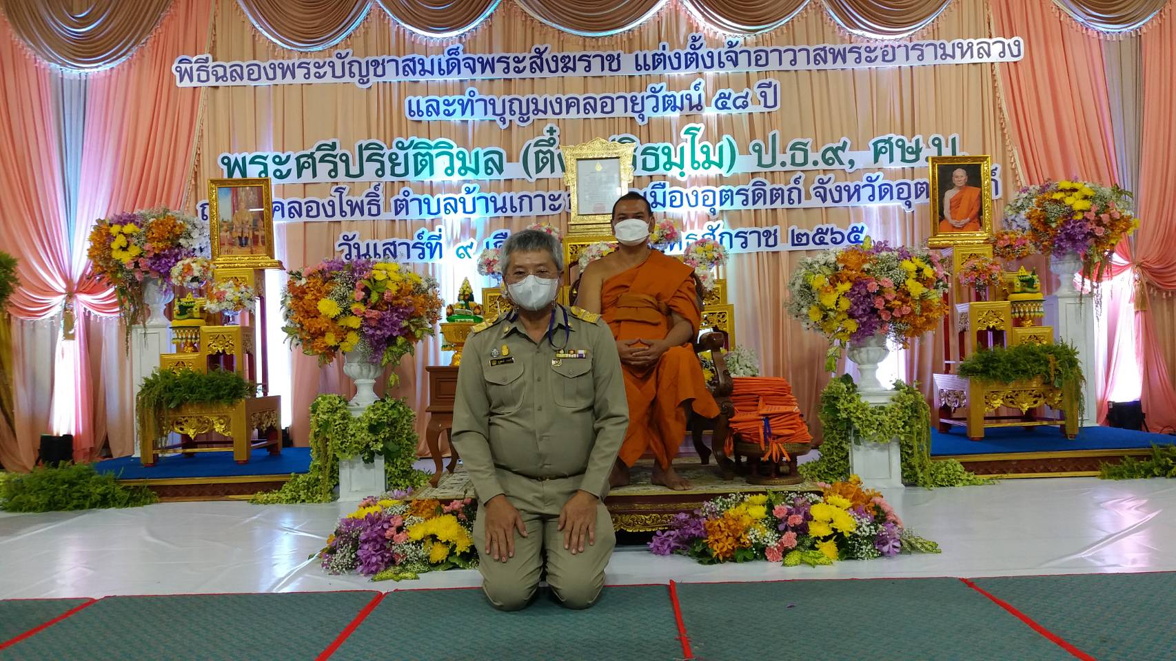วันเสาร์ที่ 9 เมษายน 2565 เวลา 09.39 น. นายอุรุพงษ์ เวชศรี แรงงานจังหวัดอุตรดิตถ์ เข้าร่วมพิธีฉลองพระบัญชาสมเด็จพระสังฆราชแต่งตั้งเจ้าอาวาสวัดคลองโพธิ์ พระอารามหลวง เพื่อแสดงมุทิตาสักการะ แด่พระศรีปริยัติวิมล เจ้าอาวาสวัดคลองโพธิ์ พระอารามหลวงจังหวัดอุตรดิตถ์ พร้อมพิธีทำบุญอายุวัฒนมงคล 58 ปี 38 พรรษาของพระศรีปริยัติวิมล โดยมี นายประเดิม เดชายนต์บัญชา นายอำเภอเมืองอุตรดิตถ์ เป็นประธานในพิธี ณ วัดคลองโพธ์ พระอารามหลวง ตำบลท่าอิฐ อำเภอเมืองอุตรดิตถ์ จังหวัดอุตรดิตถ์