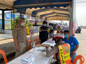 วันจันทร์ที่ 11 เมษายน 2565 เวลา 14.00 น. นายอุรุพงษ์ เวชศรี แรงงานจังหวัดอุตรดิตถ์ ลงพื้นที่ตรวจติดตามและประเมินผลศูนย์ปฏิบัติการป้องกันและลดอุบัติเหตุทางถนน ช่วงเทศกาลสงกรานต์ พ.ศ.2565 จังหวัดอุตรดิตถ์ เพื่อเยี่ยมให้กำลังใจเจ้าหน้าที่ปฏิบัติงานประจำจุดตรวจบังคับใช้กฏหมายช่วงเทศกาลสงกรานต์ พ.ศ.2565 ณ จุดตรวจบ้านน้ำหมัน หมู่ 9 ตำบลน้ำหมัน และจุดตรวจสามแยกร่วมจิต ตำบลร่วมจิต อำเภอท่าปลา จังหวัดอุตรดิตถ์