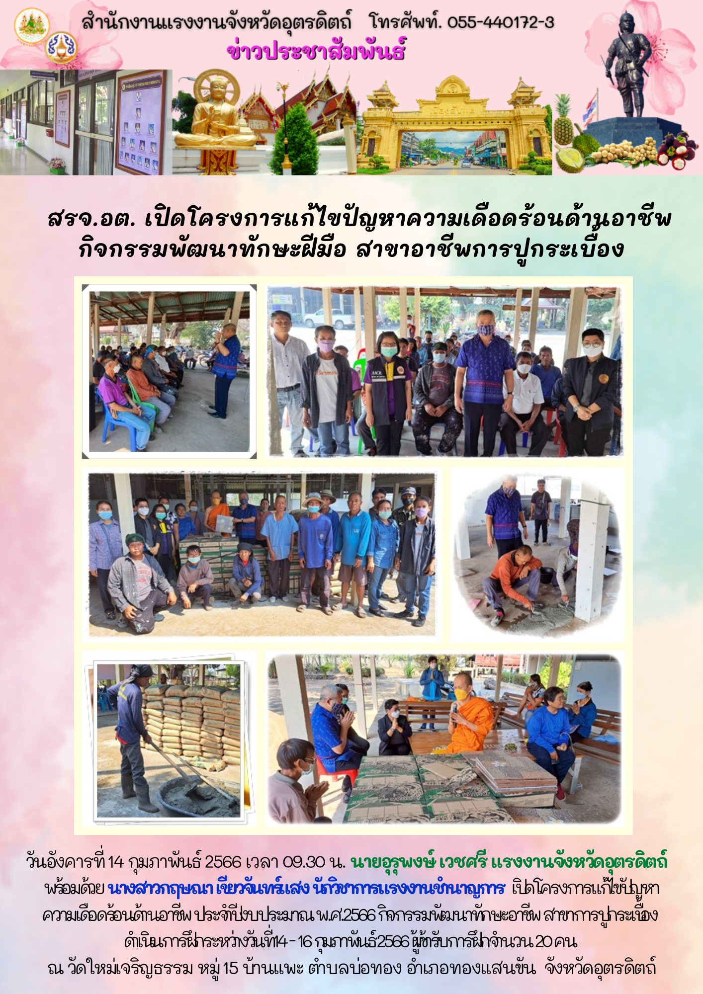 สรจ.อุตรดิตถ์ เปิดโครงการแก้ไขปัญหาความเดือดร้อนด้านอาชีพ กิจกรรมพัฒนาทักษะฝีมือ สาขาอาชีพการปูกระเบื้อง
